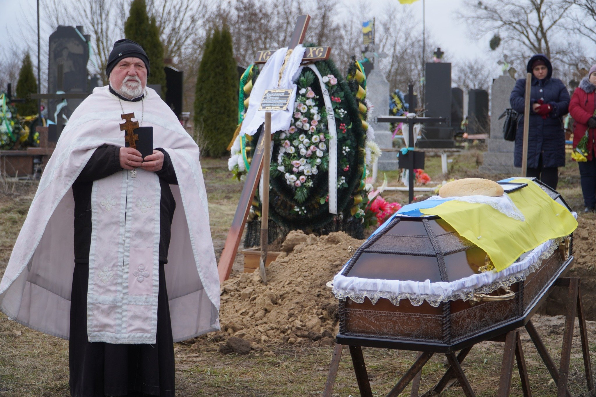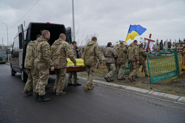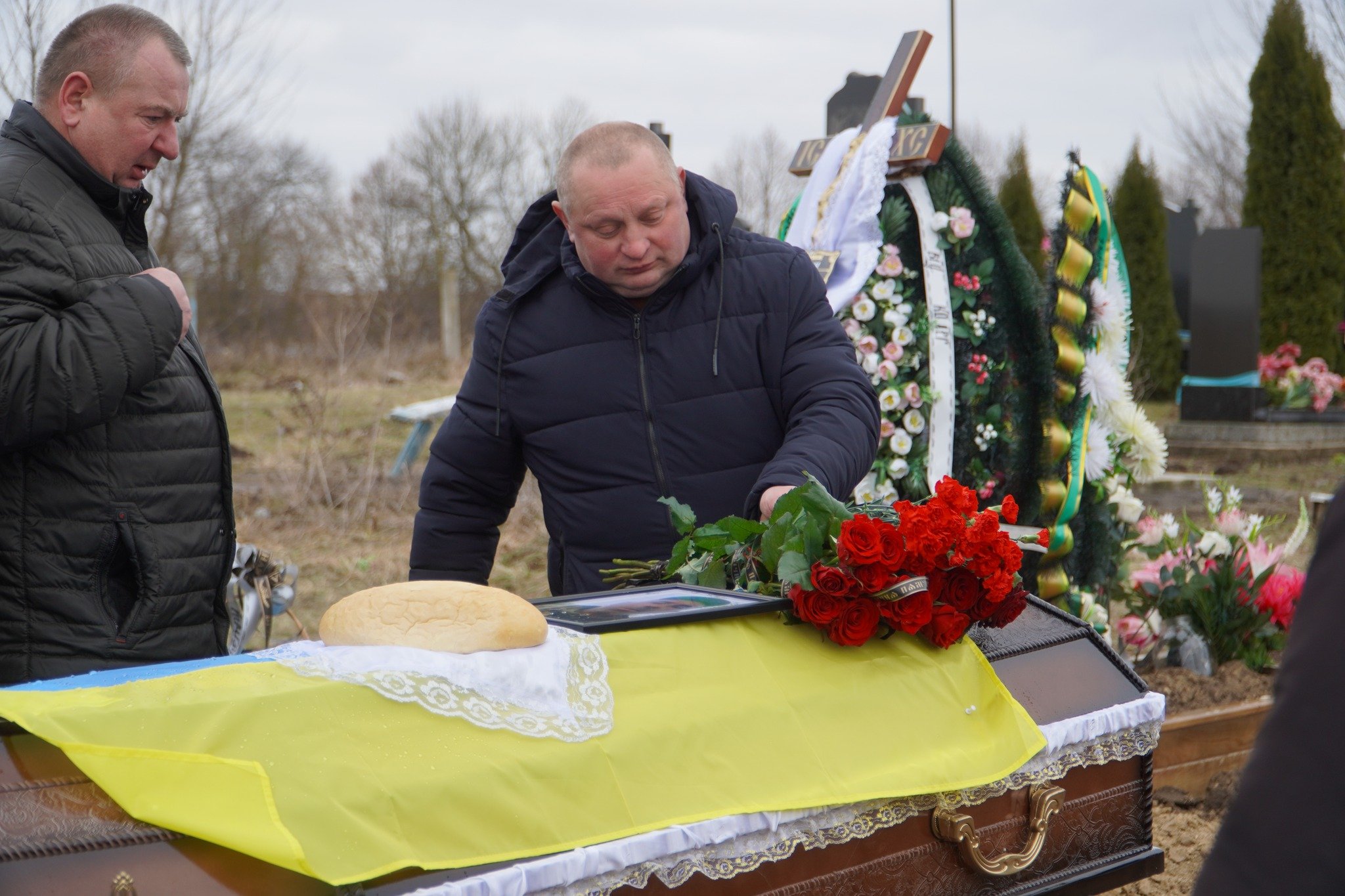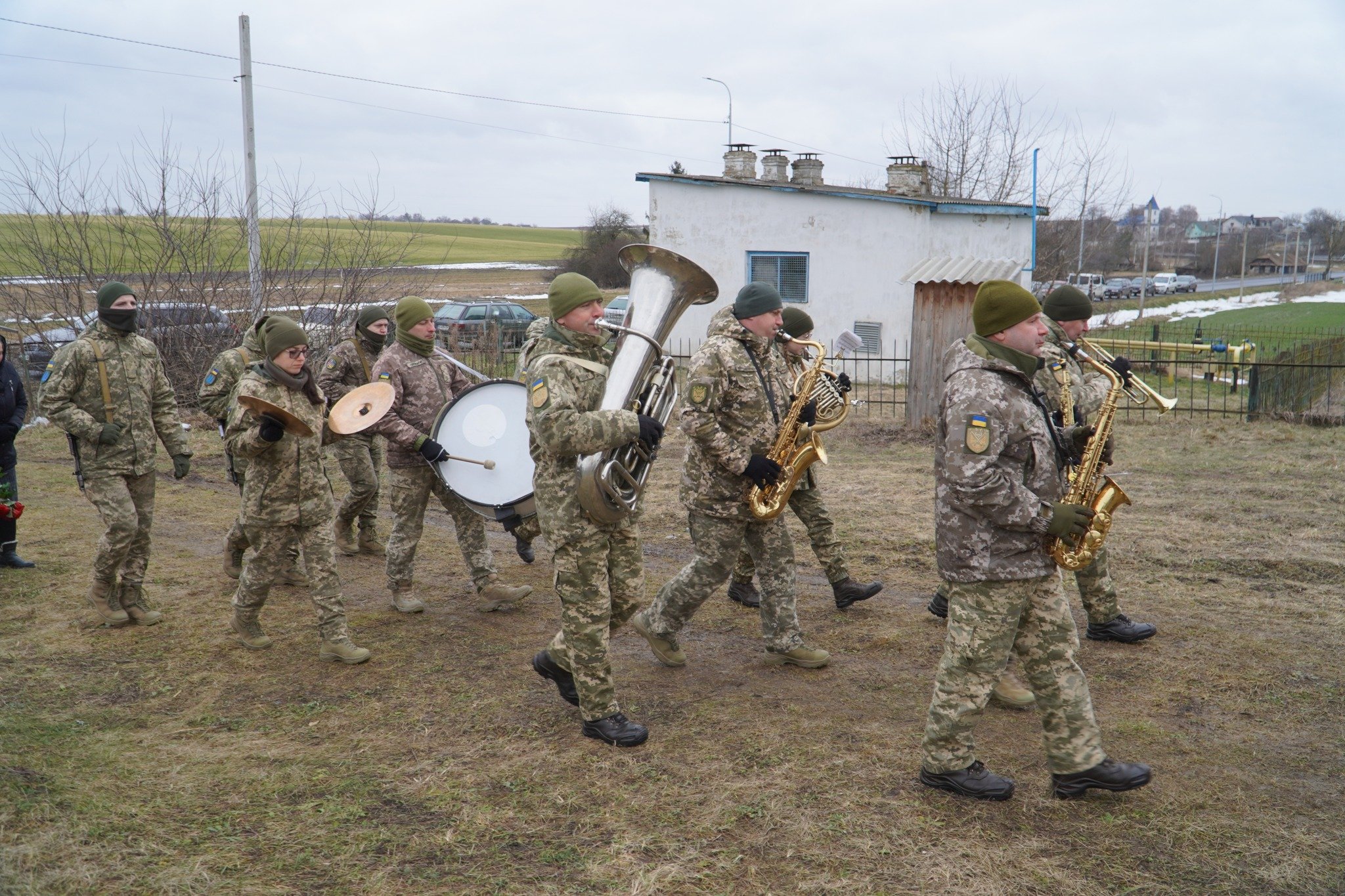 На цвинтар рідного села, де вже чимало могил з українськими прапорами, зійшлись цього холодного дня численні односельці, друзі та колеги воїна, його побратими. Військовий оркестр заграв бійцю останню мелодію.