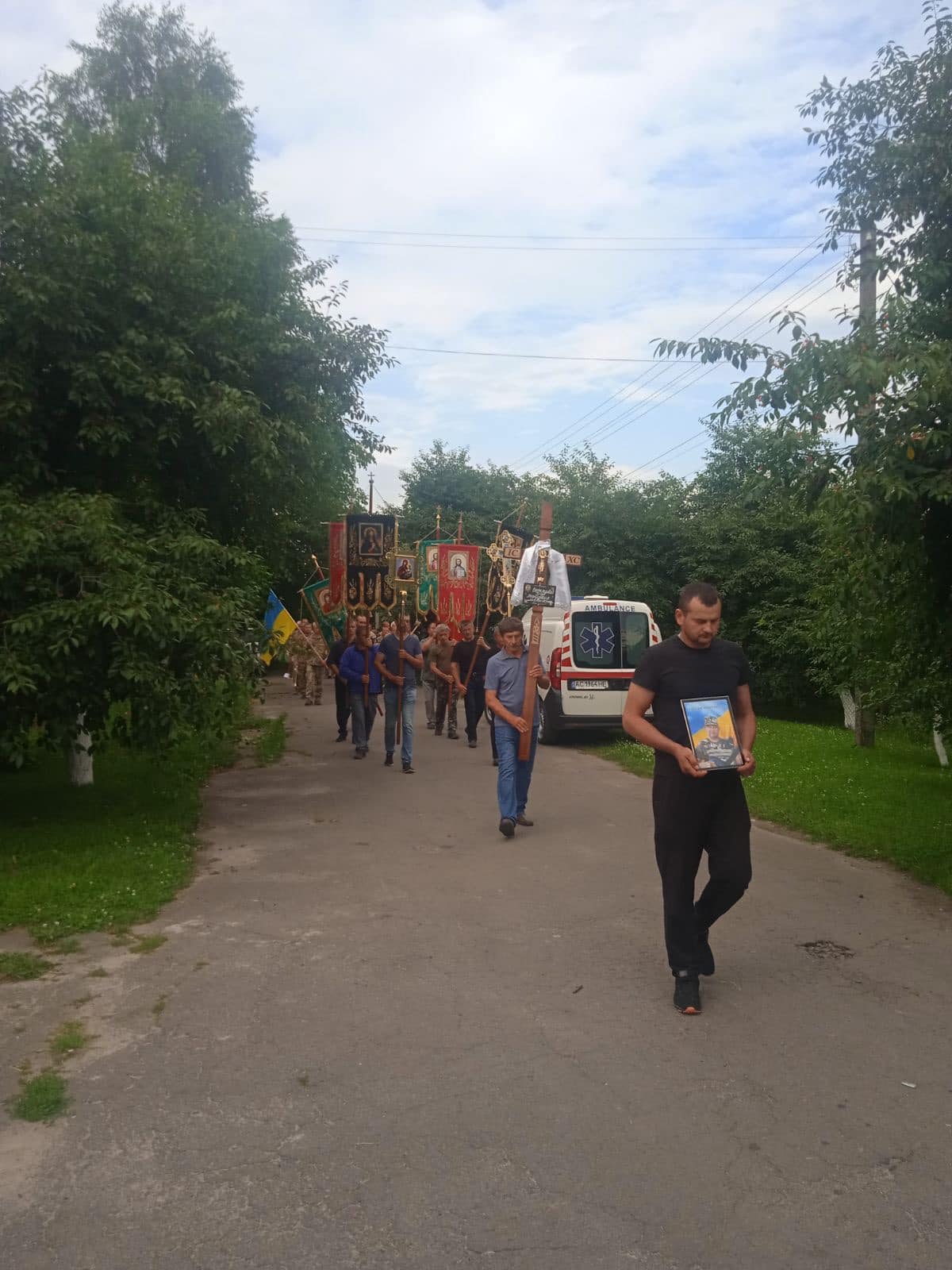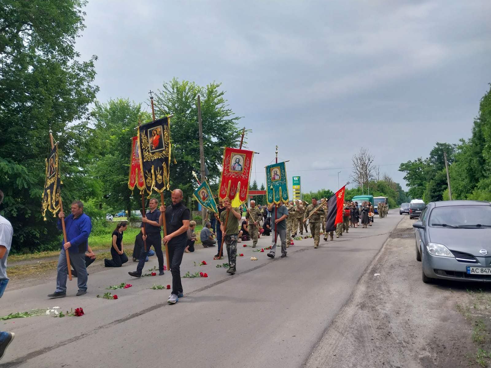 Траурний кортеж із тілом загиблого Героя жителі громади, встеливши квітами дорогу, зустрічали на колінах. Після чого кортеж попрямував до площі Соборності у м. Берестечко, де із скорботним словом до усіх звернувся міський голова Ігор Грудзевич.