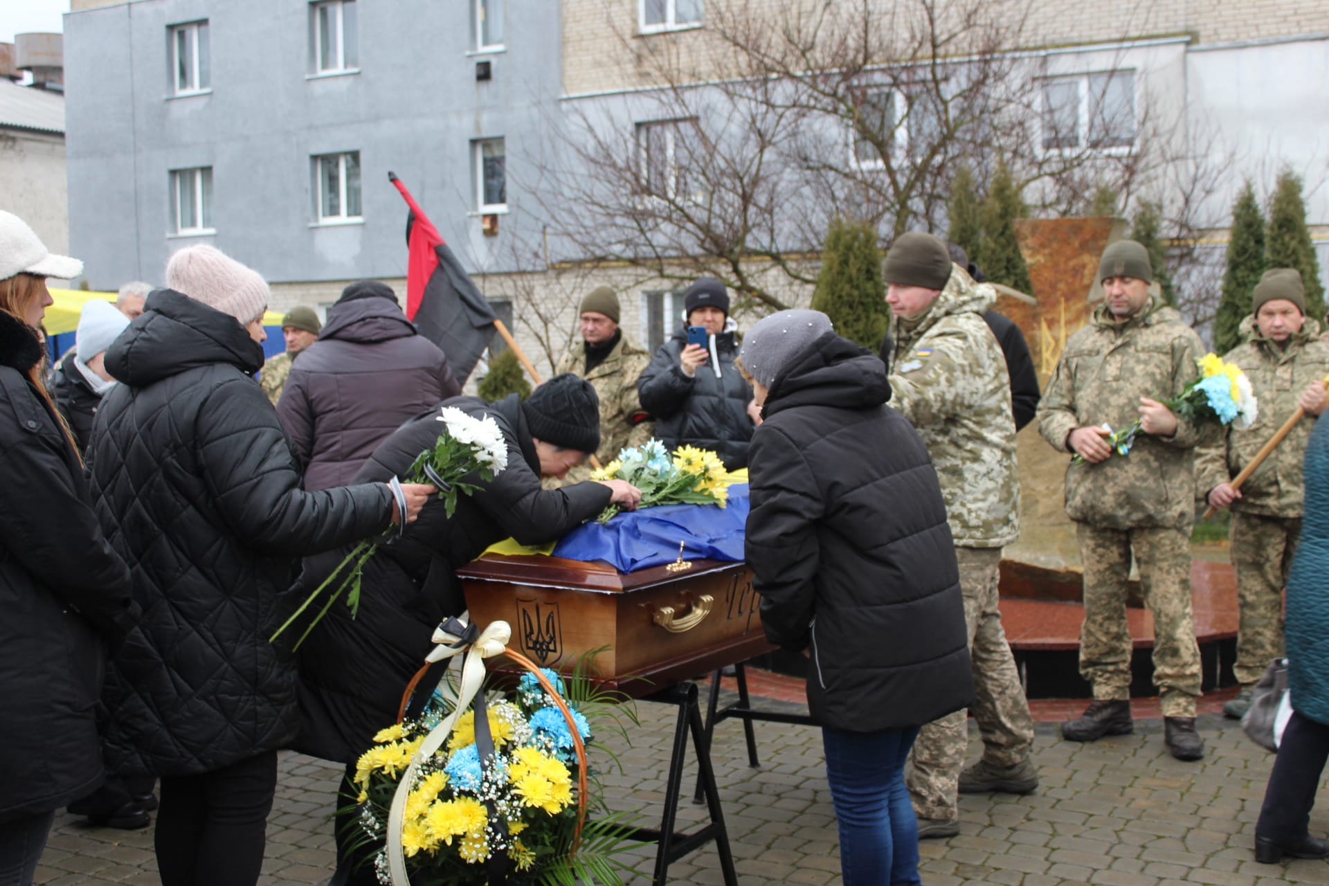 І здавалося, що безмежний сум заполонив не лише серця усіх, хто провадив воїна в останню дорогу. Бо навіть небо плакало холодним дощем, а вітер розбурхував біль непоправної втрати.