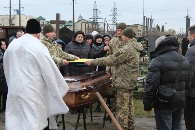 Поховали Героя з усіма військовими почестями на Алеї Слави міського кладовища.