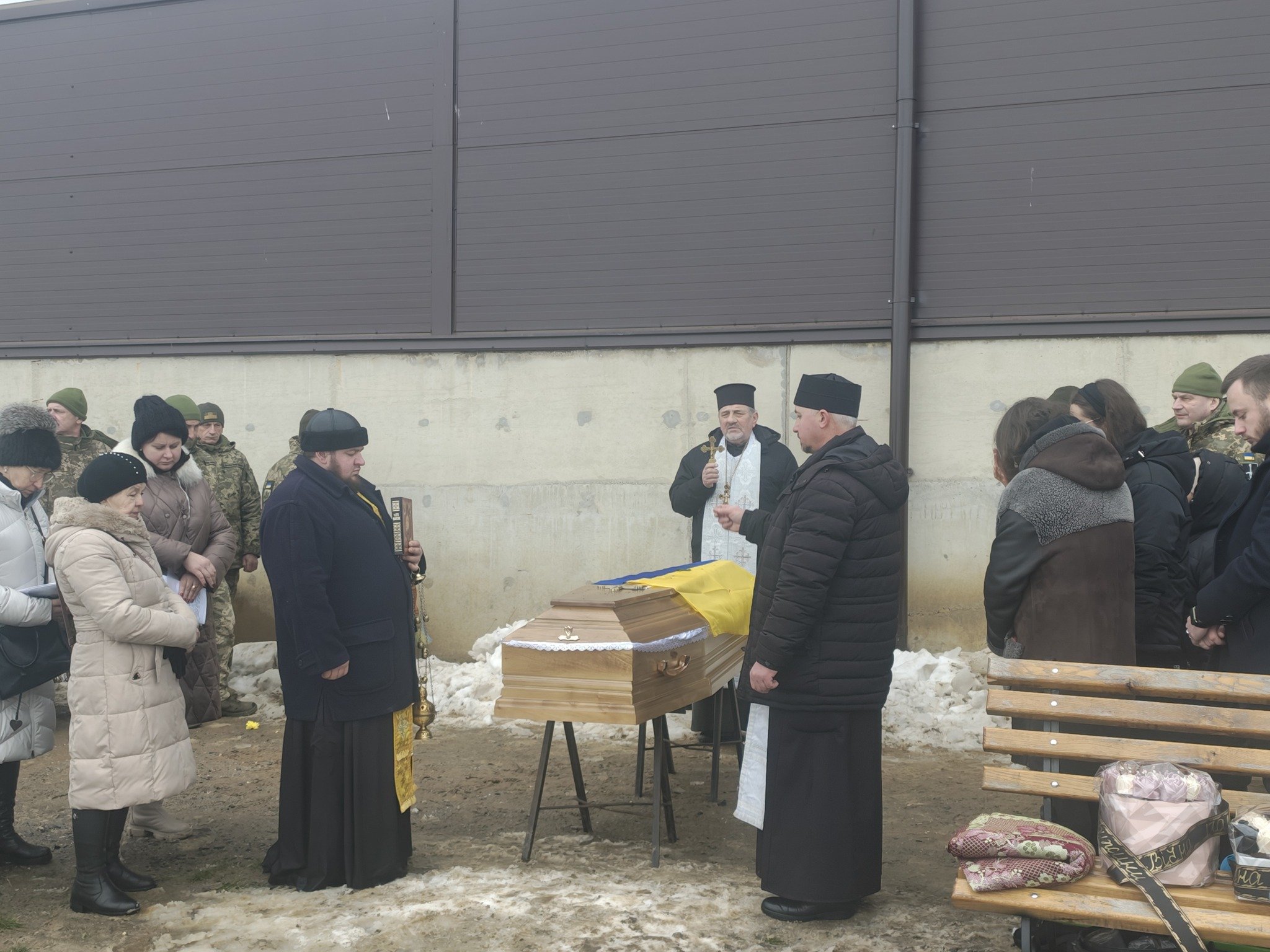 Після прощання на рідному обійсті траурний кортеж рушив у центр міста, де біля пам’ятного знака Борцям за волю та незалежність України відбулася громадська панахида.