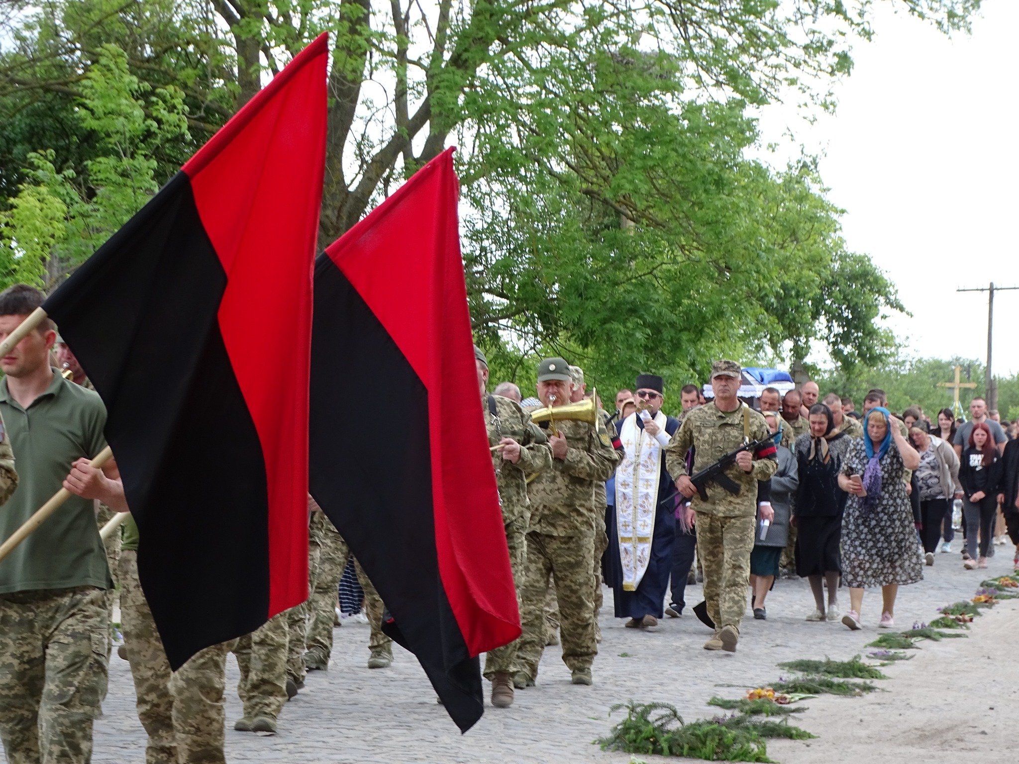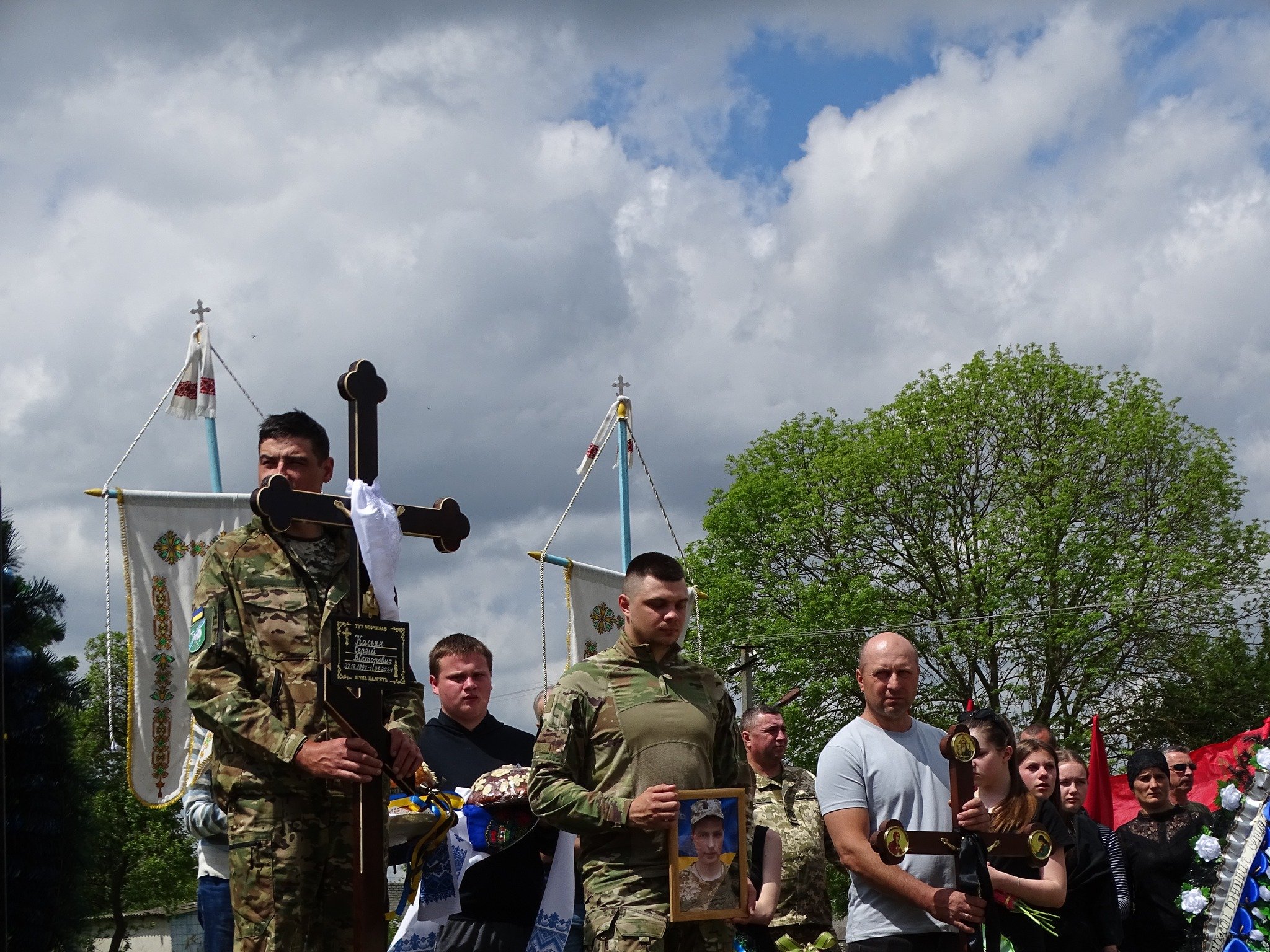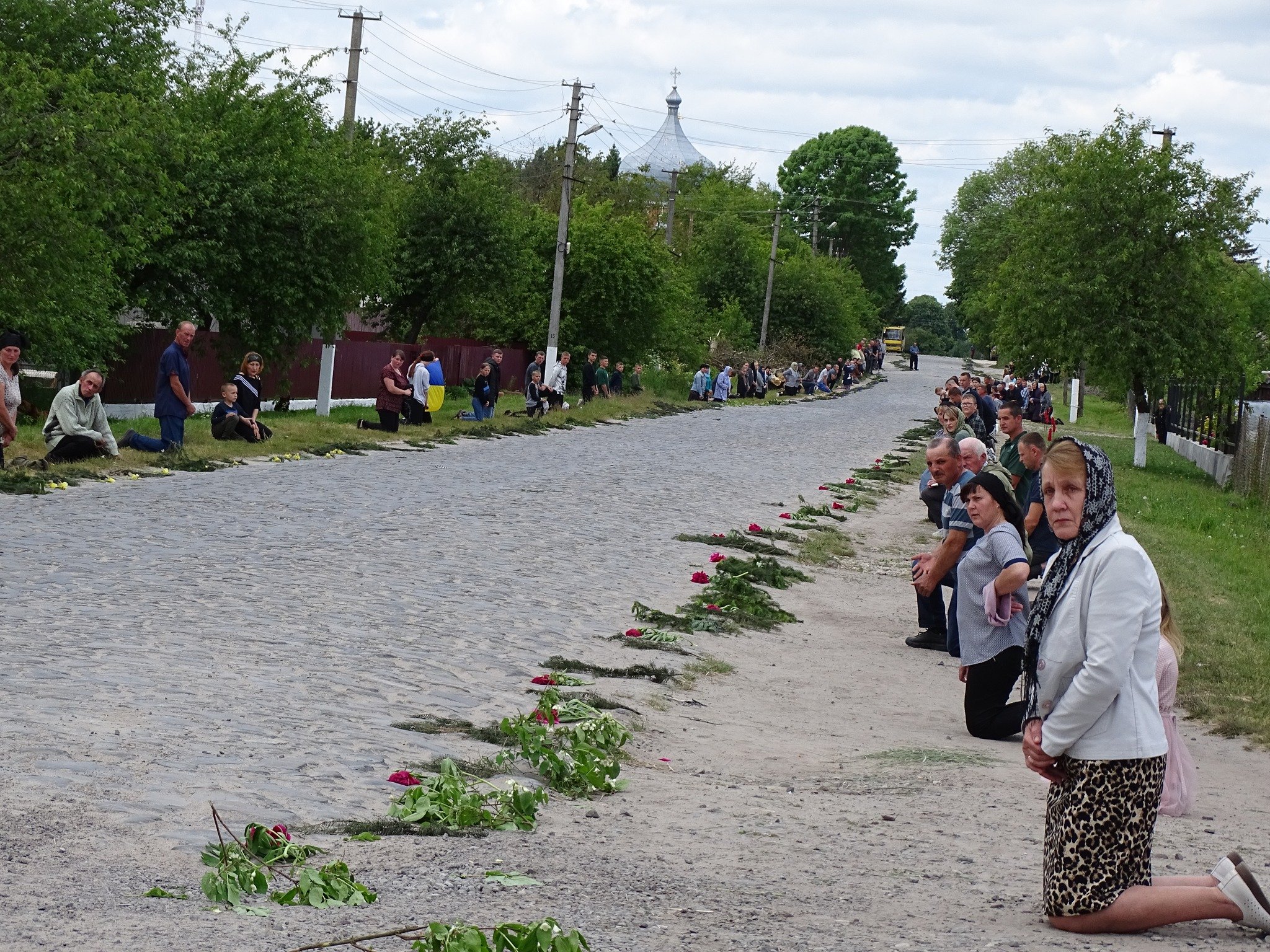 Віддаючи данину шану, люди на колінах зустрічали загиблого захисника. По уквітчаних піонами, ірисами та травневим різнотрав’ям дорогах Героя на плечах пронесли вулицями села до місця земного спочинку на місцевому кладовищі.