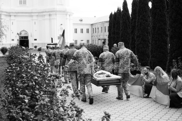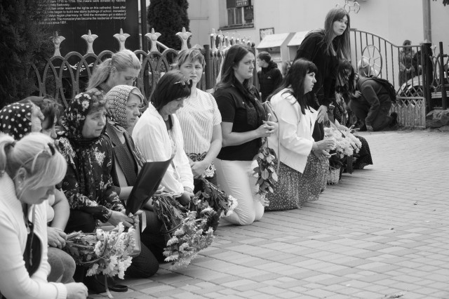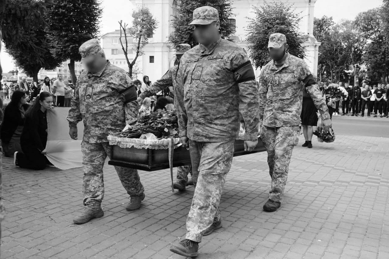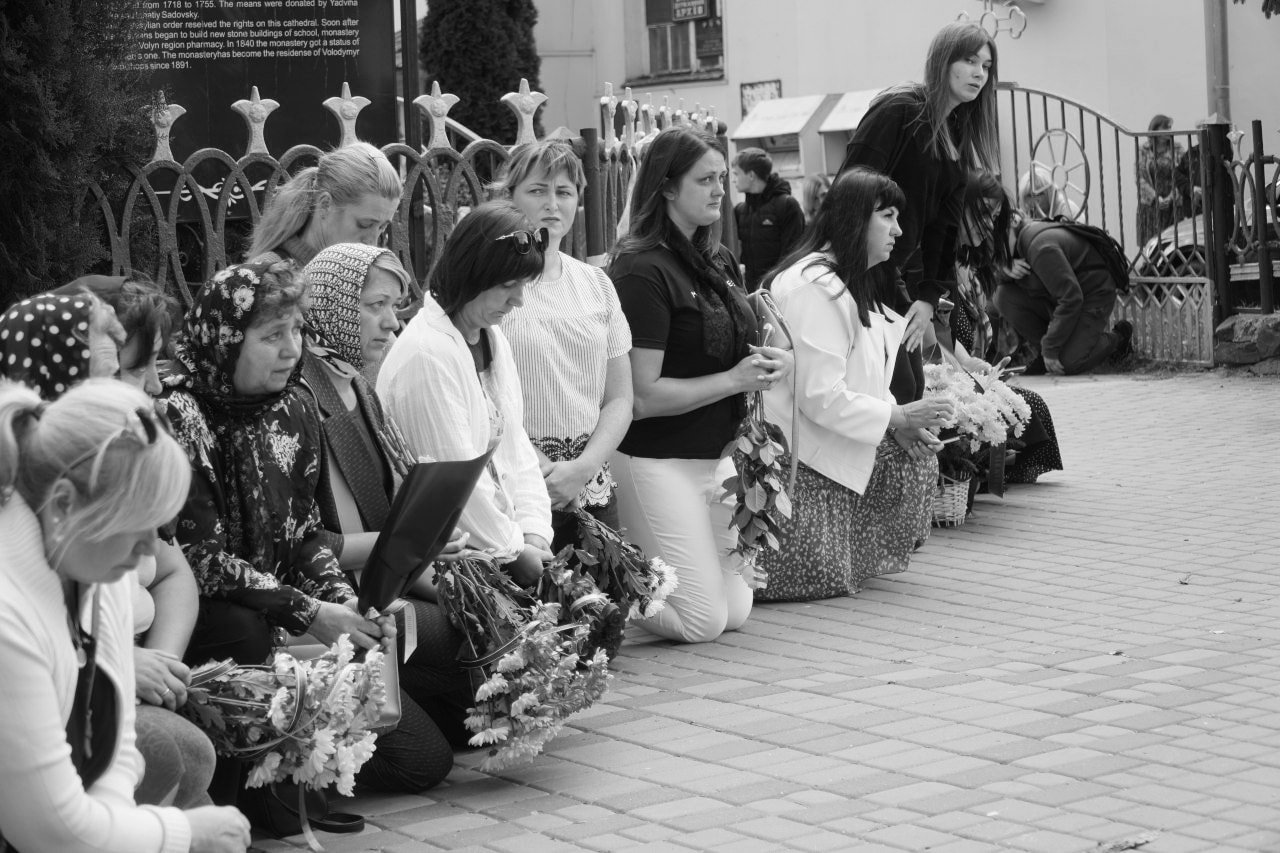 Створивши живий коридор, на колінах, зі сльозами на очах, скорботою та болем у серці мешканці провели в останню земну дорогу полеглого Героя.