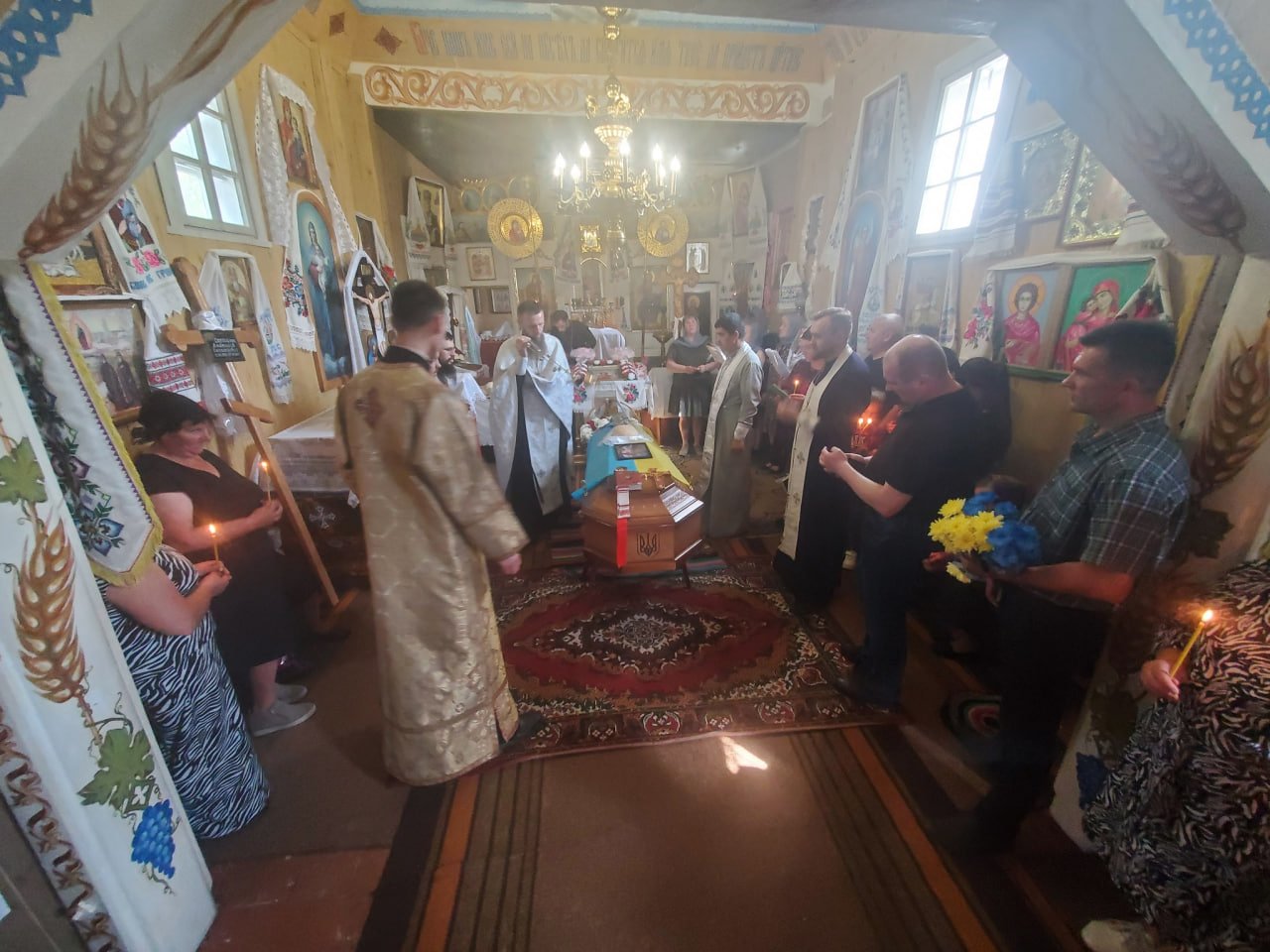 Чин відспівування звершили у Свято-Михайлівському місцевому храмі. Поховали військовослужбовця під звуки Державного Гімну України з усіма військовими почестями на кладовищі у рідному селі.