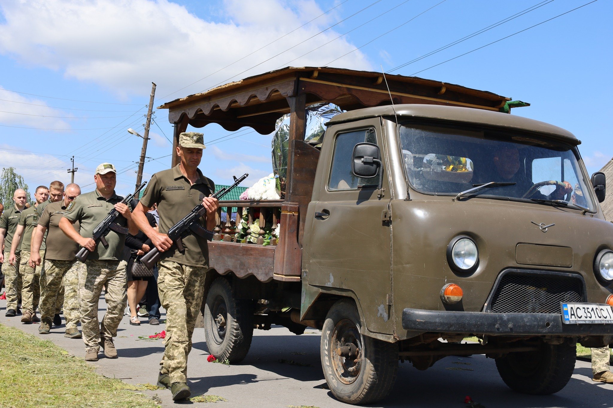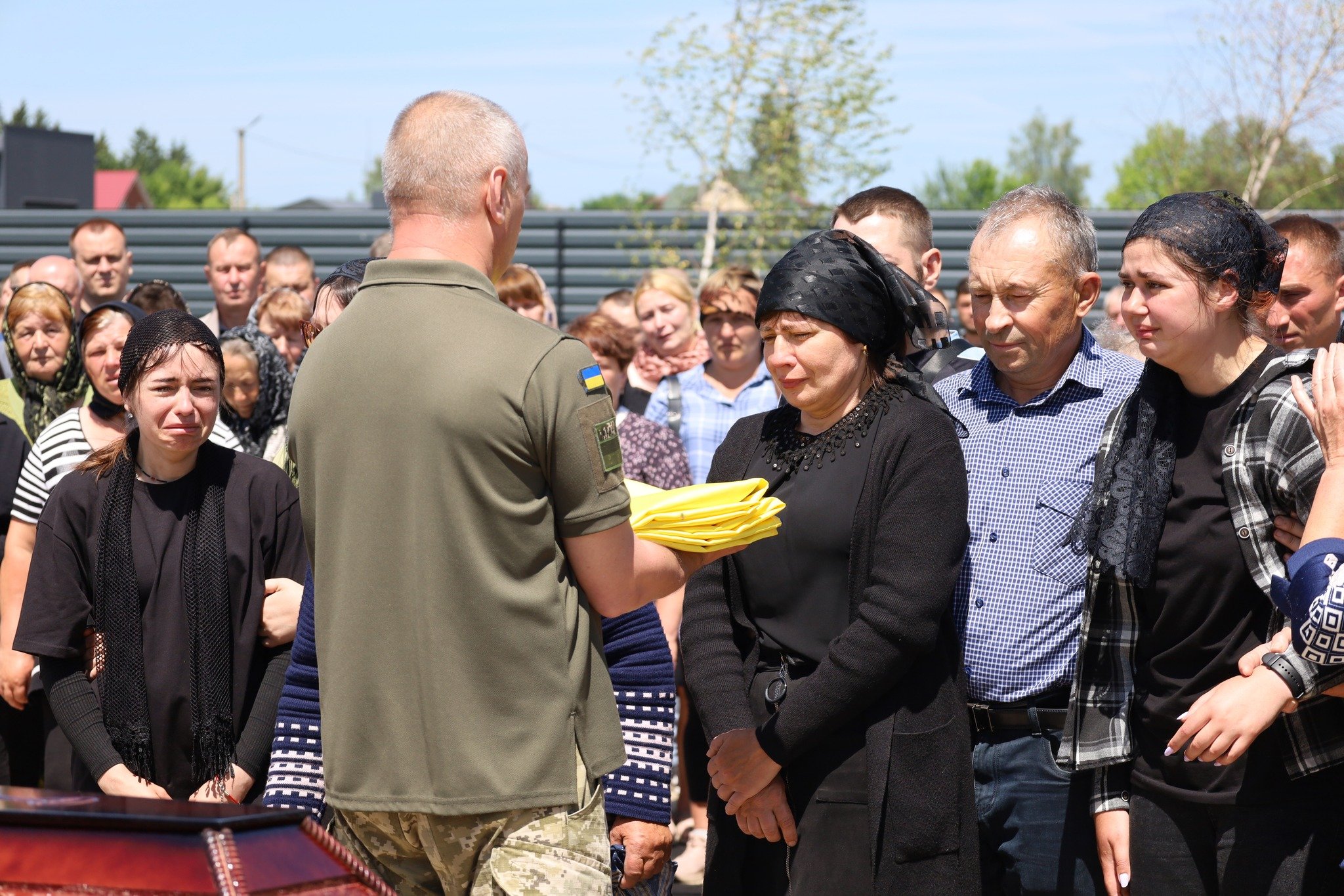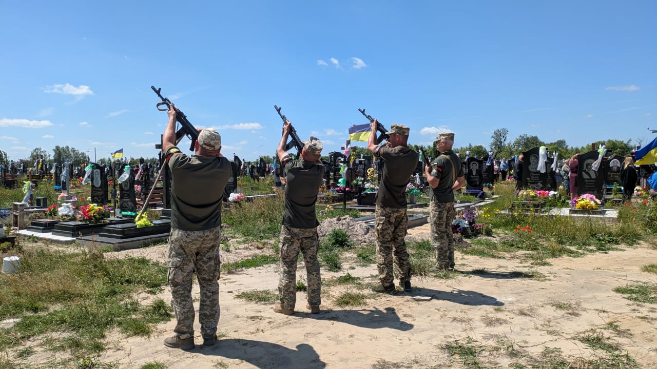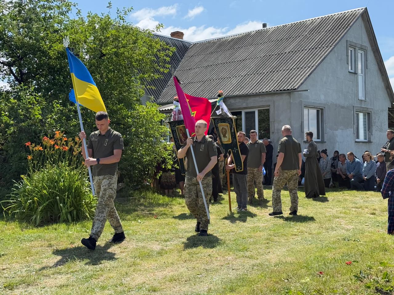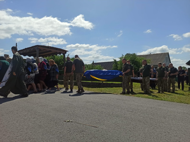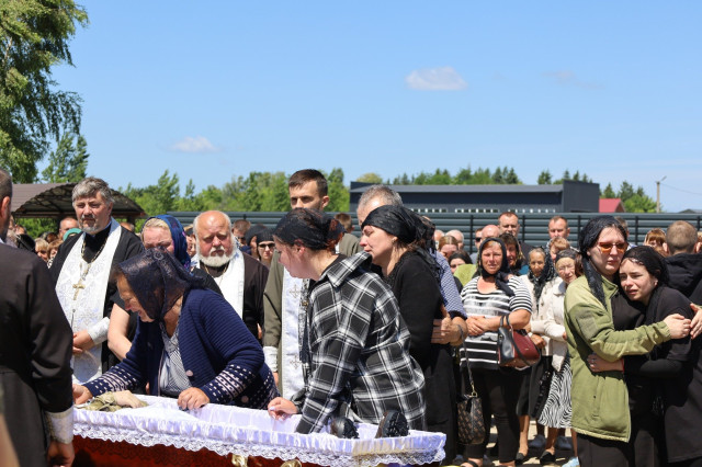 Під звуки Державного Гімну, з молитвами, квітами та сльозами вдячності й болю, громада провела Героя на вічний спочинок. На прощанні – рідні, побратими, друзі, односельчани, представники влади й духовенства.