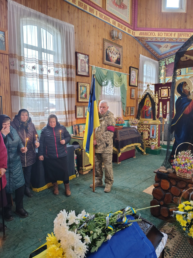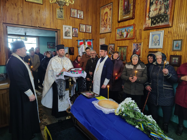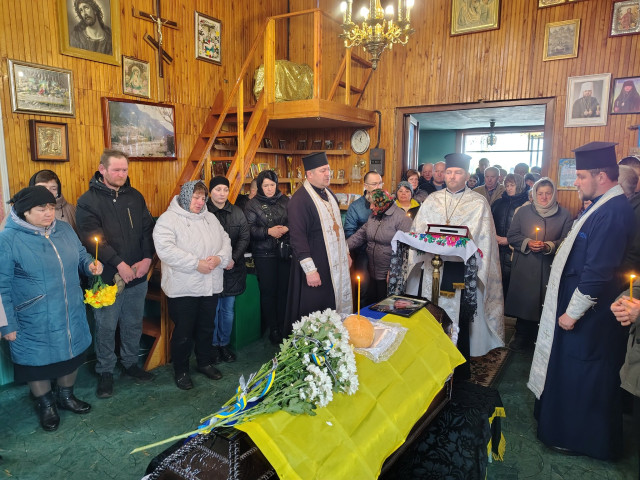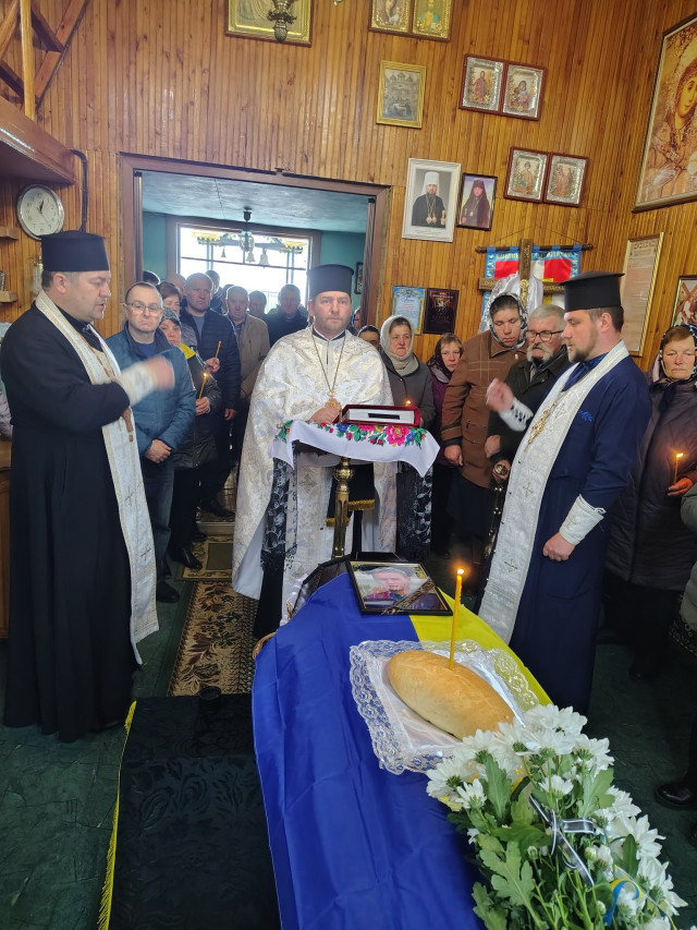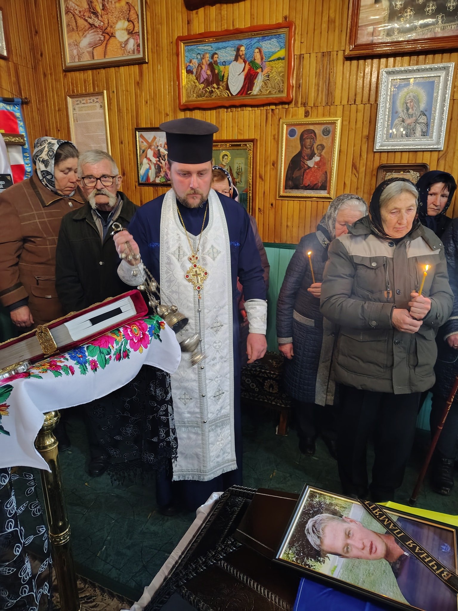 Священники Оваднівського благочиння Володимир-Волинської єпархії ПЦУ звершили чин похорону у церкві Дмитрія Солунського у селі Білин.