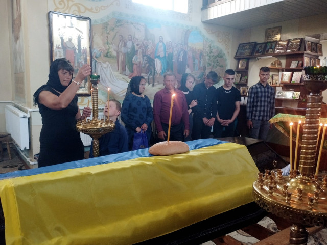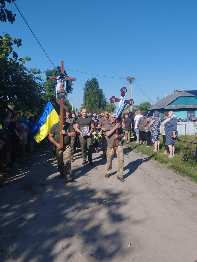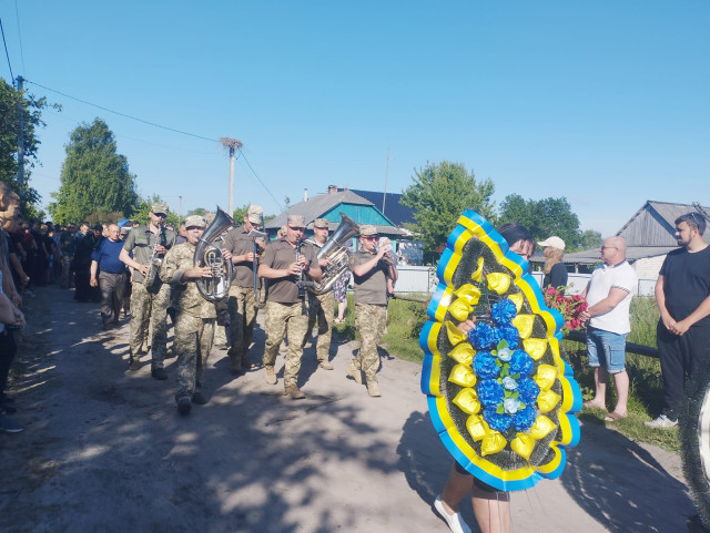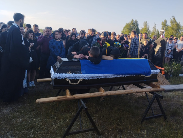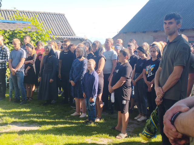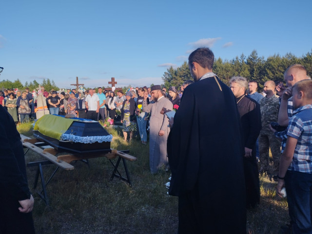 Поховали солдата з військовими почестями на місцевому кладовищі.