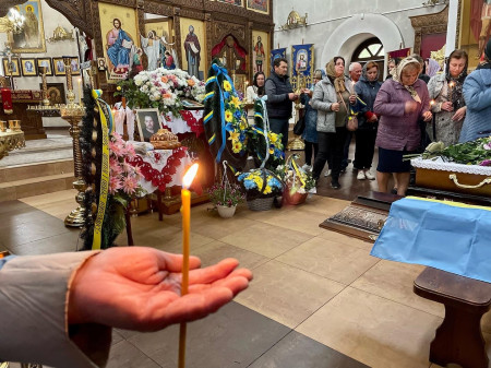 Зустрічали жалобний кортеж із тілом Героя усім містом.Прощання відбулося у храмі Кирила та Мефодія в Нововолинську.