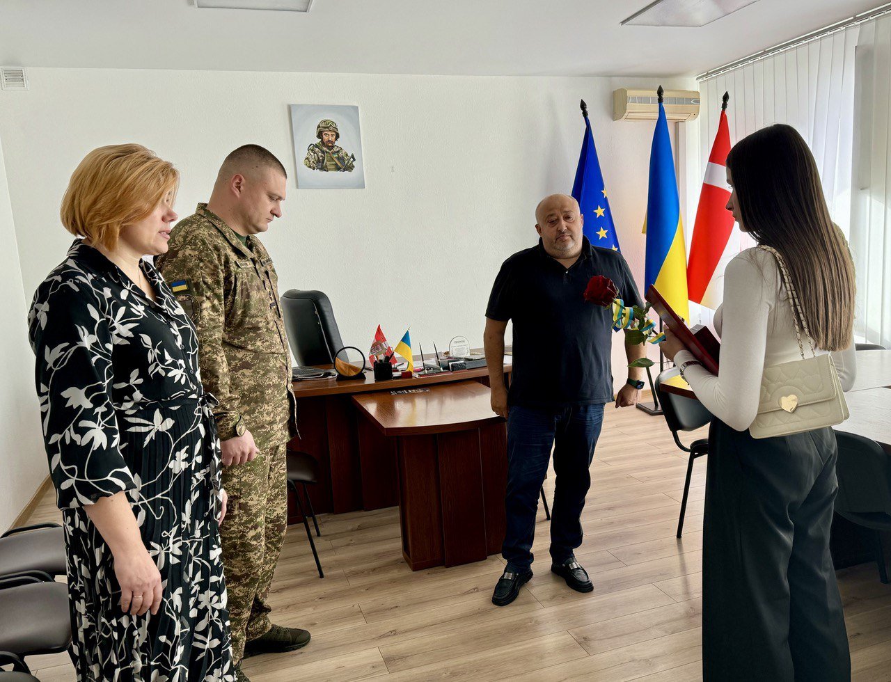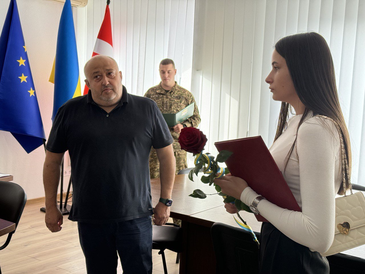 Орден «За мужність» ІІІ ступеня дружині героя вручили начальник Луцької районної військової адміністрації Анатолій Костик та командир військової частини 1141 Національної гвардії України Володимир Олійник.