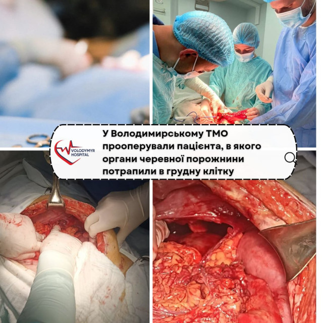 На Волині прооперували пацієнта, в якого органи черевної порожнини потрапили в грудину
