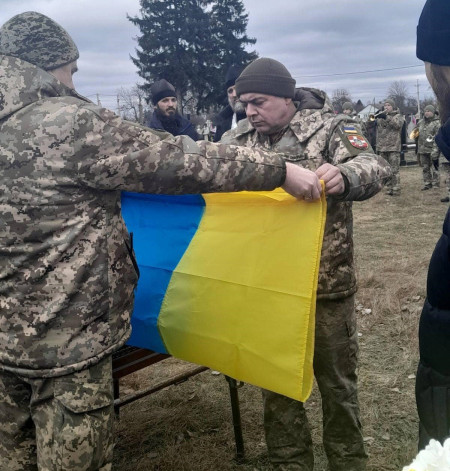 Під час прощання усі, хто був присутній на чині похорону, помолились за упокій душі загиблого воїна та віддали останню шану захиснику, який поліг за нашу незалежність та свободу.