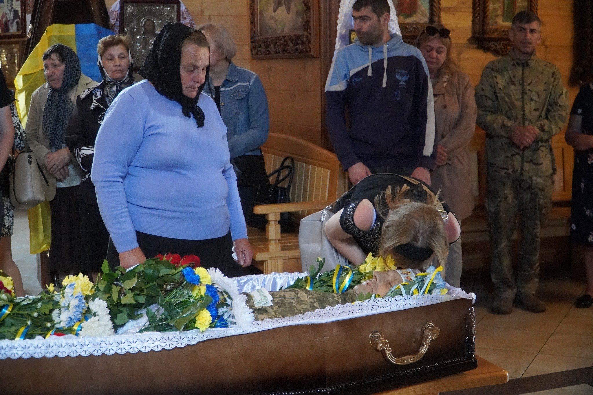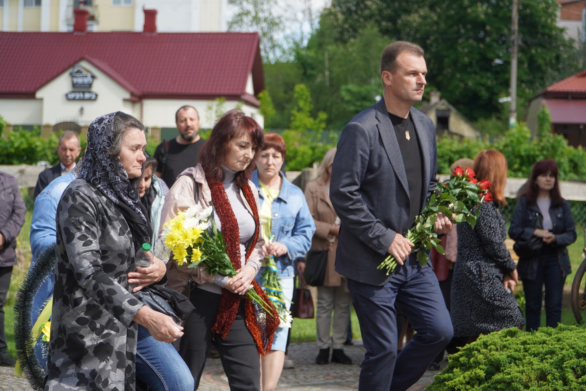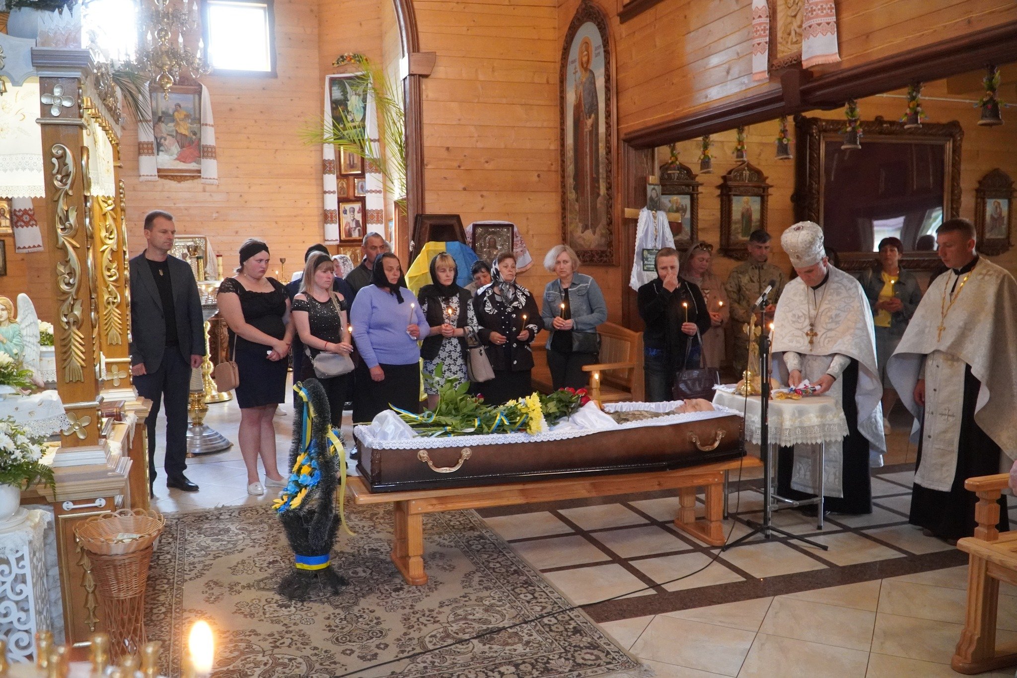 Траурний кортеж, який проїжджав вулицями міста, мешканці громади зустріли стоячи навколішки із синьо-жовтими стягами у руках. Чин похорону відбувся у храмі Віри, Надії, Любові та матері їх Софії, куди прийшли рідні, друзі покійного, представники міської та районної влади, а також небайдужі мешканці громади.