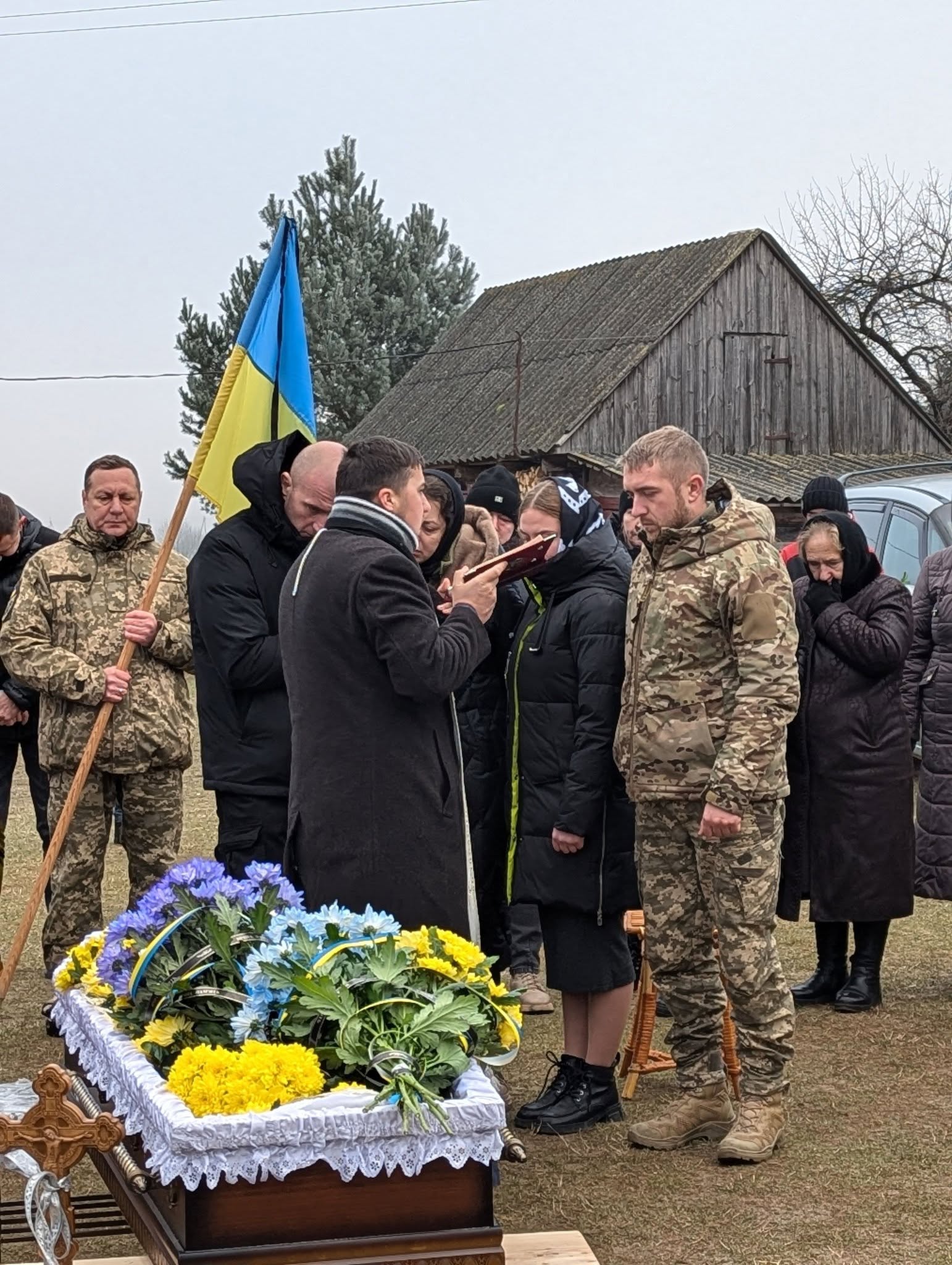Попрощатися з Героєм прийшло багато людей: родина, друзі, односельчани, військові, представники місцевої влади, духовенства. Щирі співчуття від сільського голови Віталія Кашика та себе особисто висловив секретар сільської ради Павло Кухта: