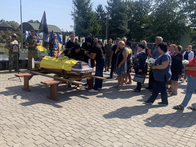 Поховали воїна з військовими почестями на новому селищному кладовищі.