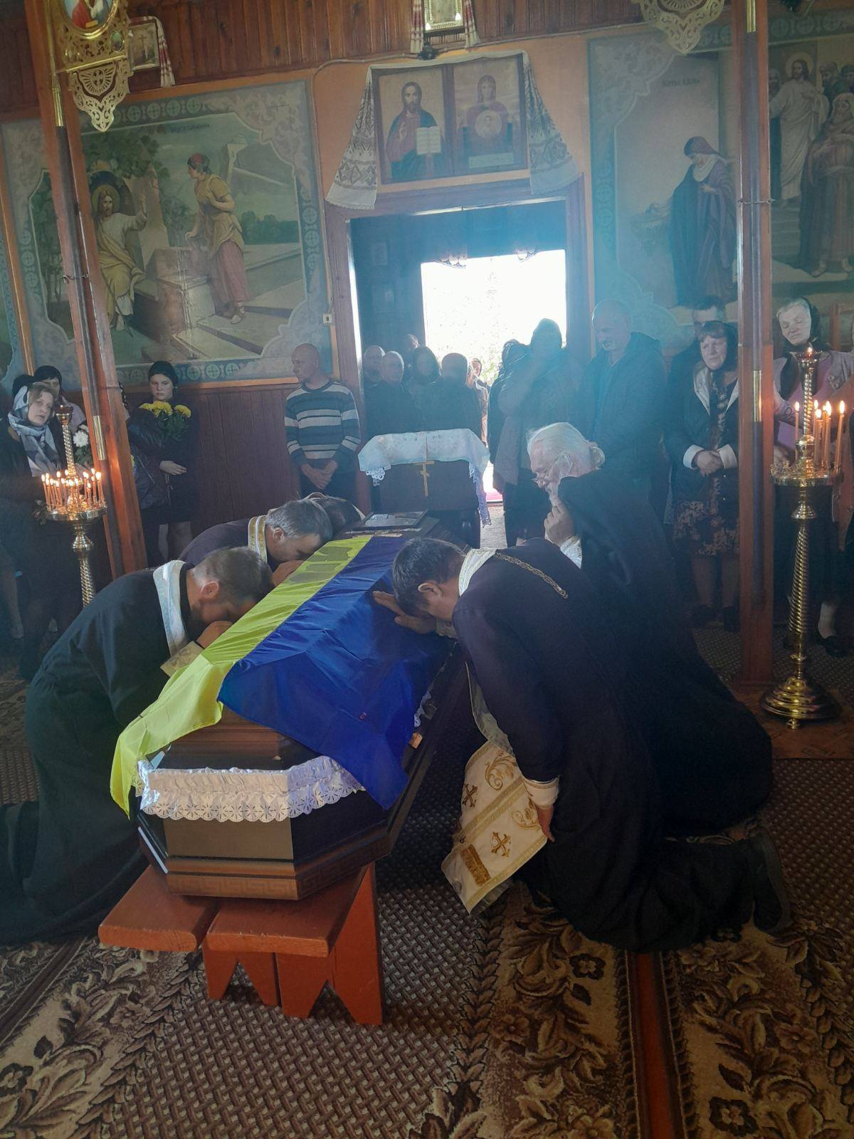 Після молитви траурна процесія рушила до місця вічного спочинку, а жителі громади вийшли на вулиці, утворивши живий коридор шани для Захисника.