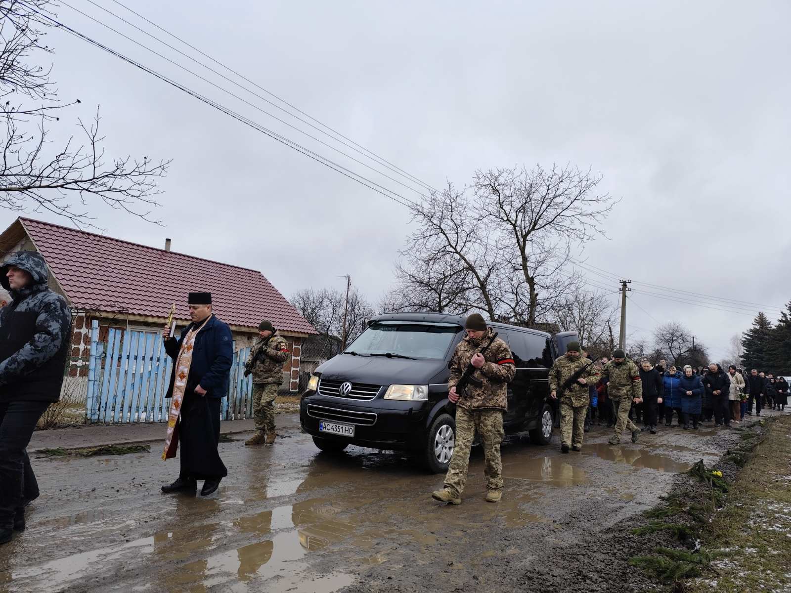 Скорботна процесія від рідного дому вирушила до храму Святого Архистратига Михаїла села Омельне, де й відспівали воїна. Чин поховання здійснили священники Ківерцівського деканату ПЦУ.