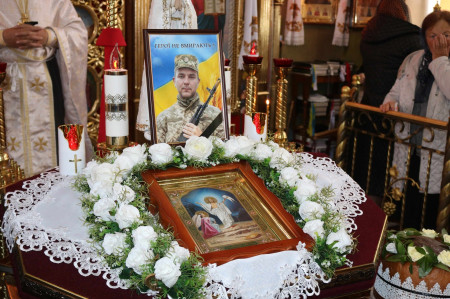 Попрощатися з 31-річним воїном прийшли рідні, побратими, представники громади та духовенство.