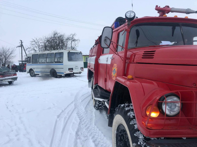 На Волині рятувальники відбуксирували зі снігового замету шкільний автобус з дітьми