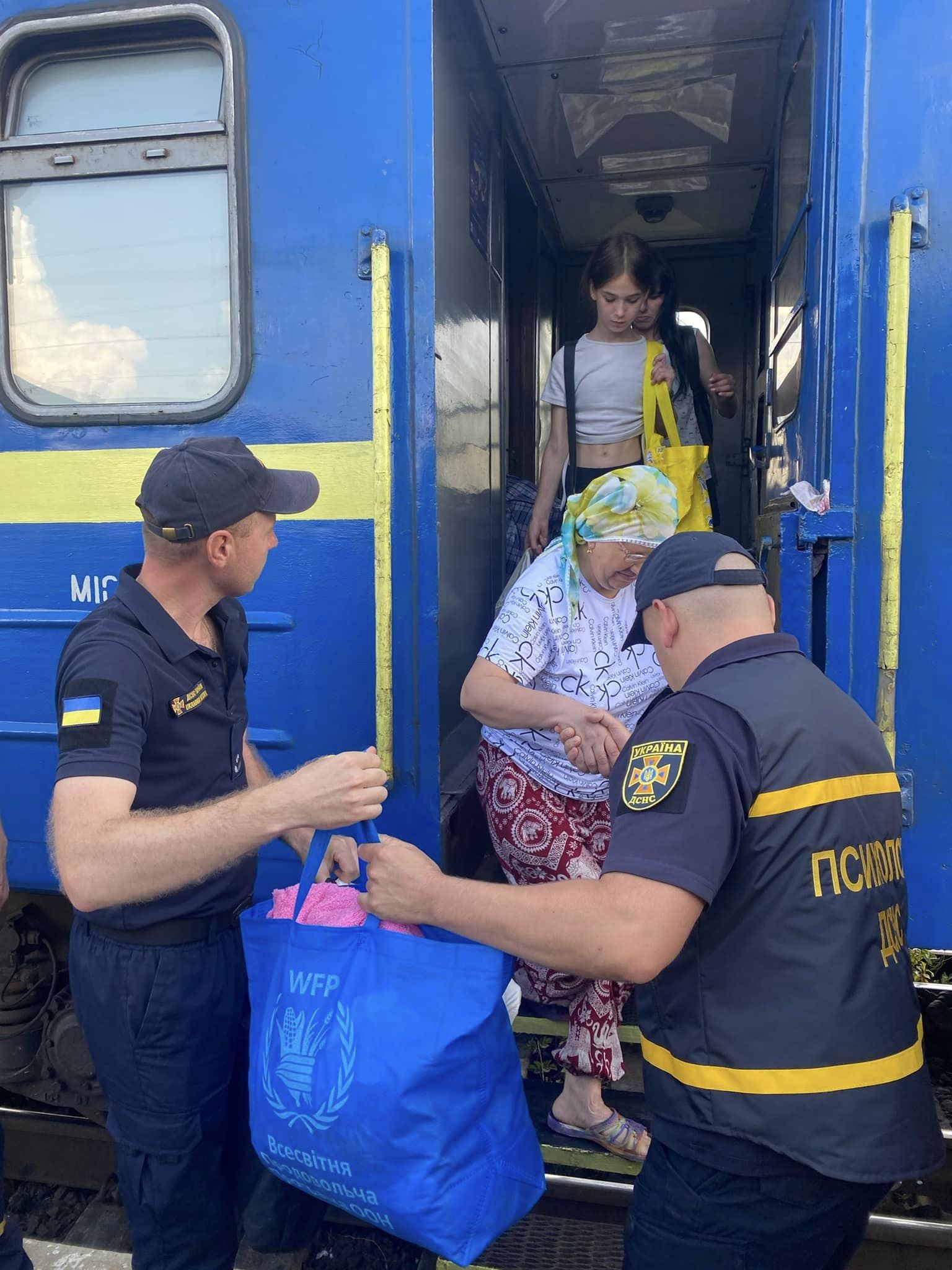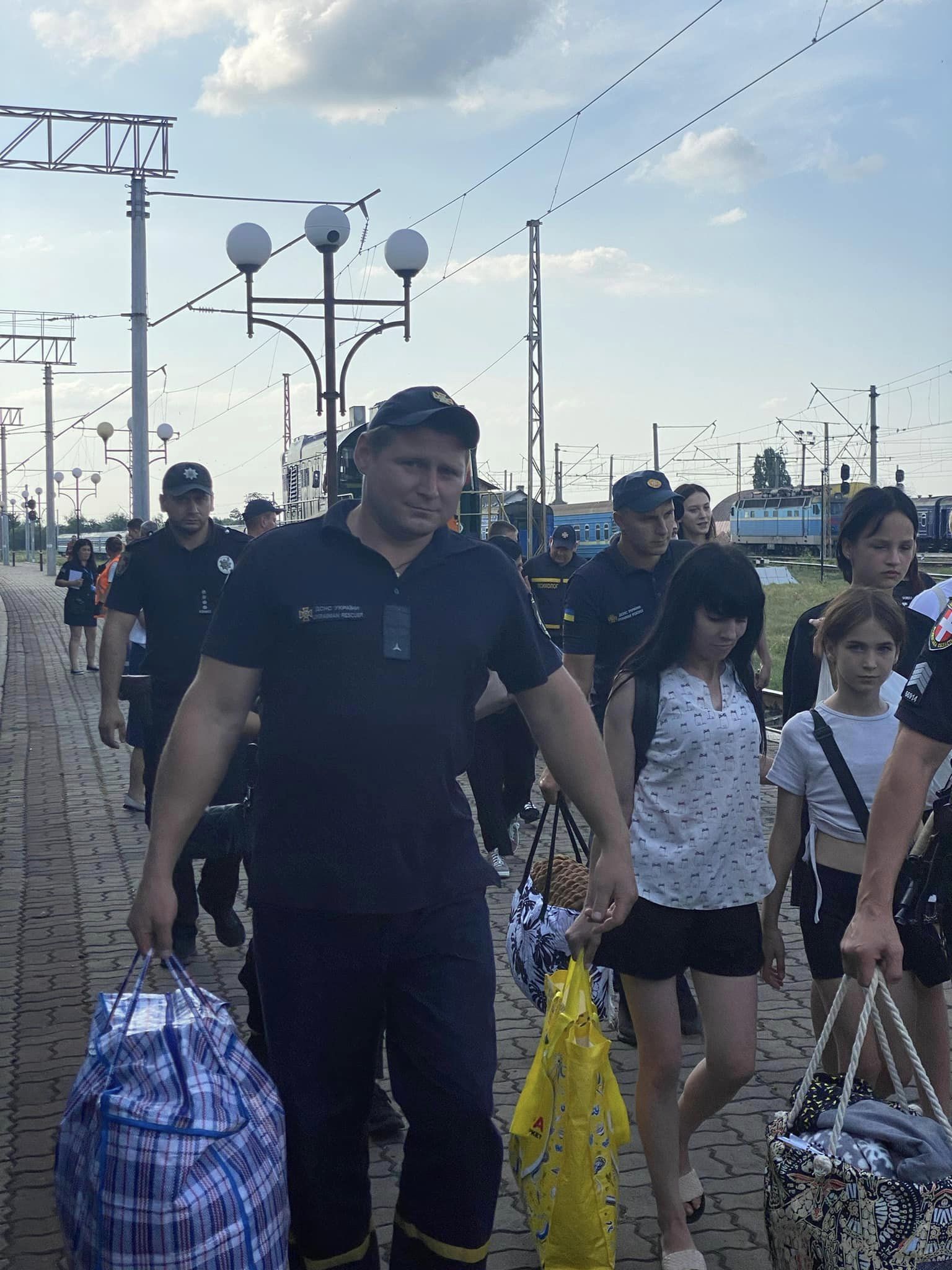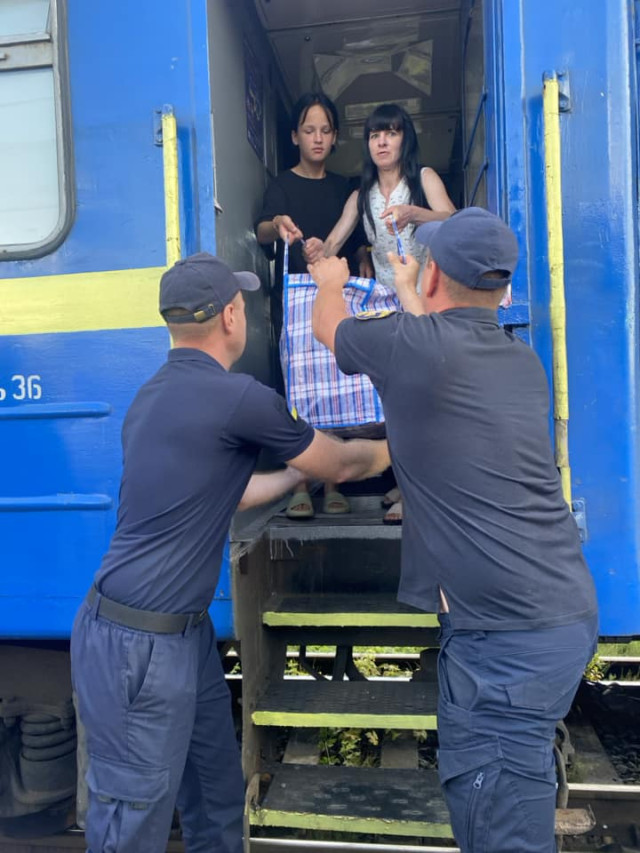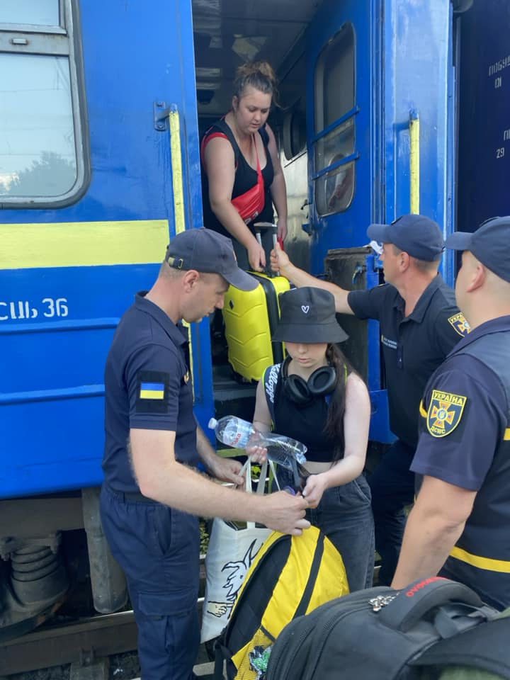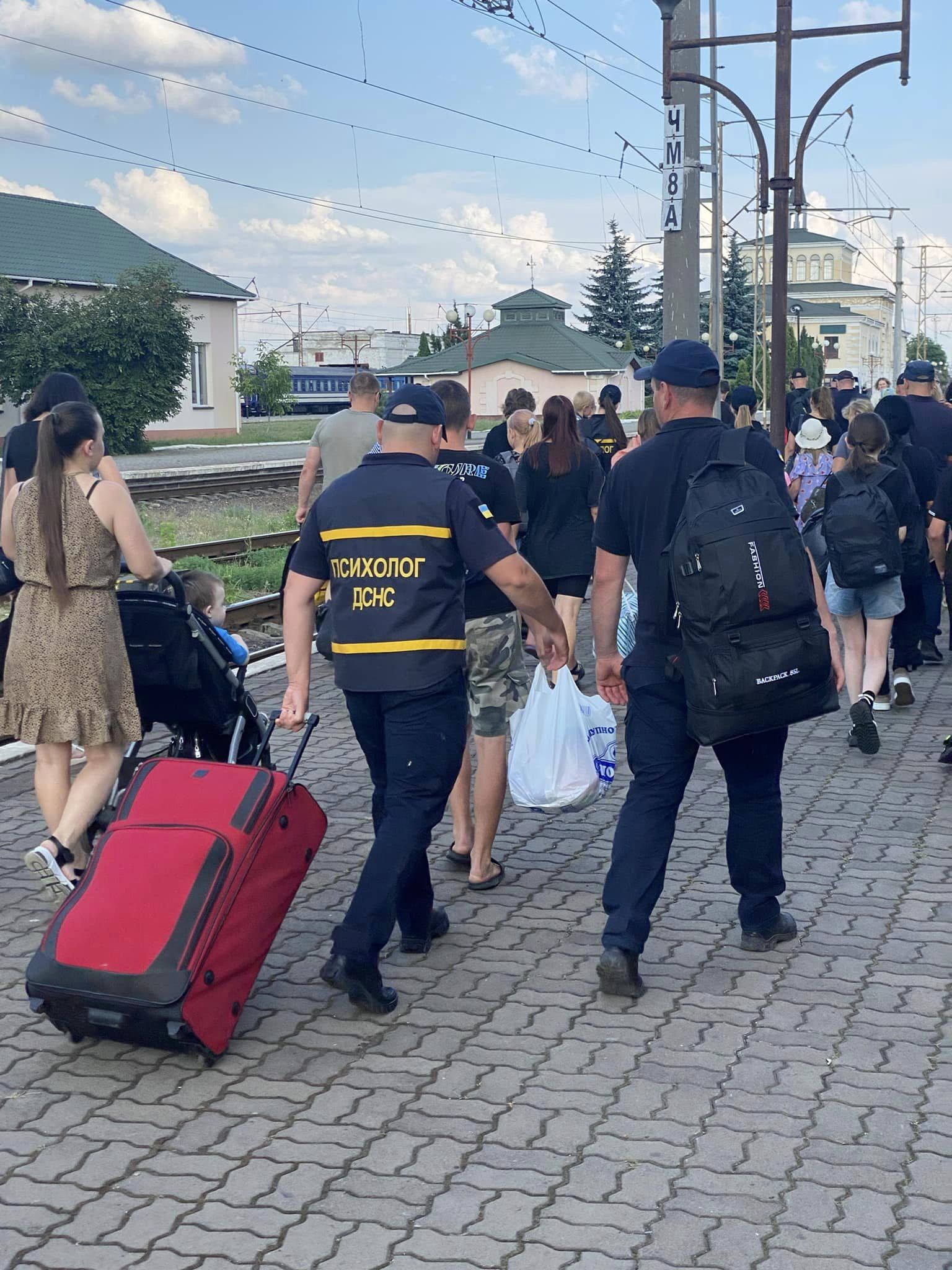 На пероні їх зустріли рятувальники, волонтери, медики, поліцейські та посадовці органів влади. Рятувальники допомогли прибулим перенести речі, а психологи ДСНС поспілкувалися з ними та надали емоційну підтримку тим, хто її потребував.