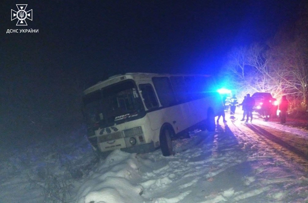 У Нововолинську біля полудня рятувальники 5 ДПРЧ витягнули зі снігового замету автобус. У транспортному засобі перебував тільки водій.