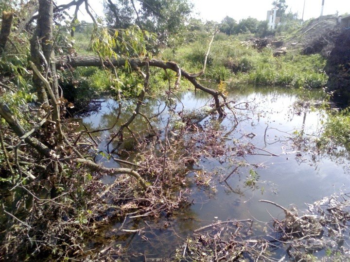 Місток геть поламався, а з нього стрибають діти. Сама водойма заросла так, що жоден човен не пропливе. А минулого року там сплав влаштовували. До того усього ще й гілляки впали у воду.