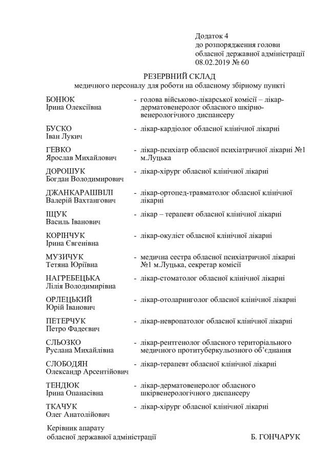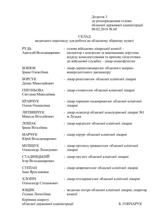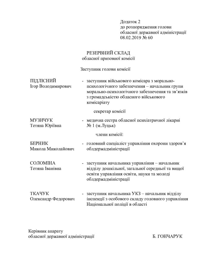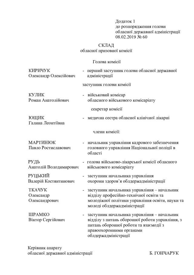 Відповідно до документу, першого заступника голови ОДА, голову обласної призовної комісії Олександра Киричука спільно з військовим комісаром обласного військового комісаріату Романом Куликом зобов’язали організувати проведення: