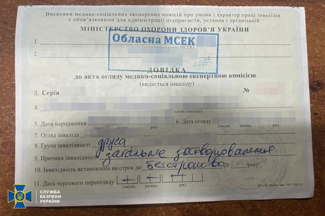 У Дніпропетровській області затримано мешканця регіону, який організував трафік через використання підроблених висновків медико-соціальних експертних комісій.