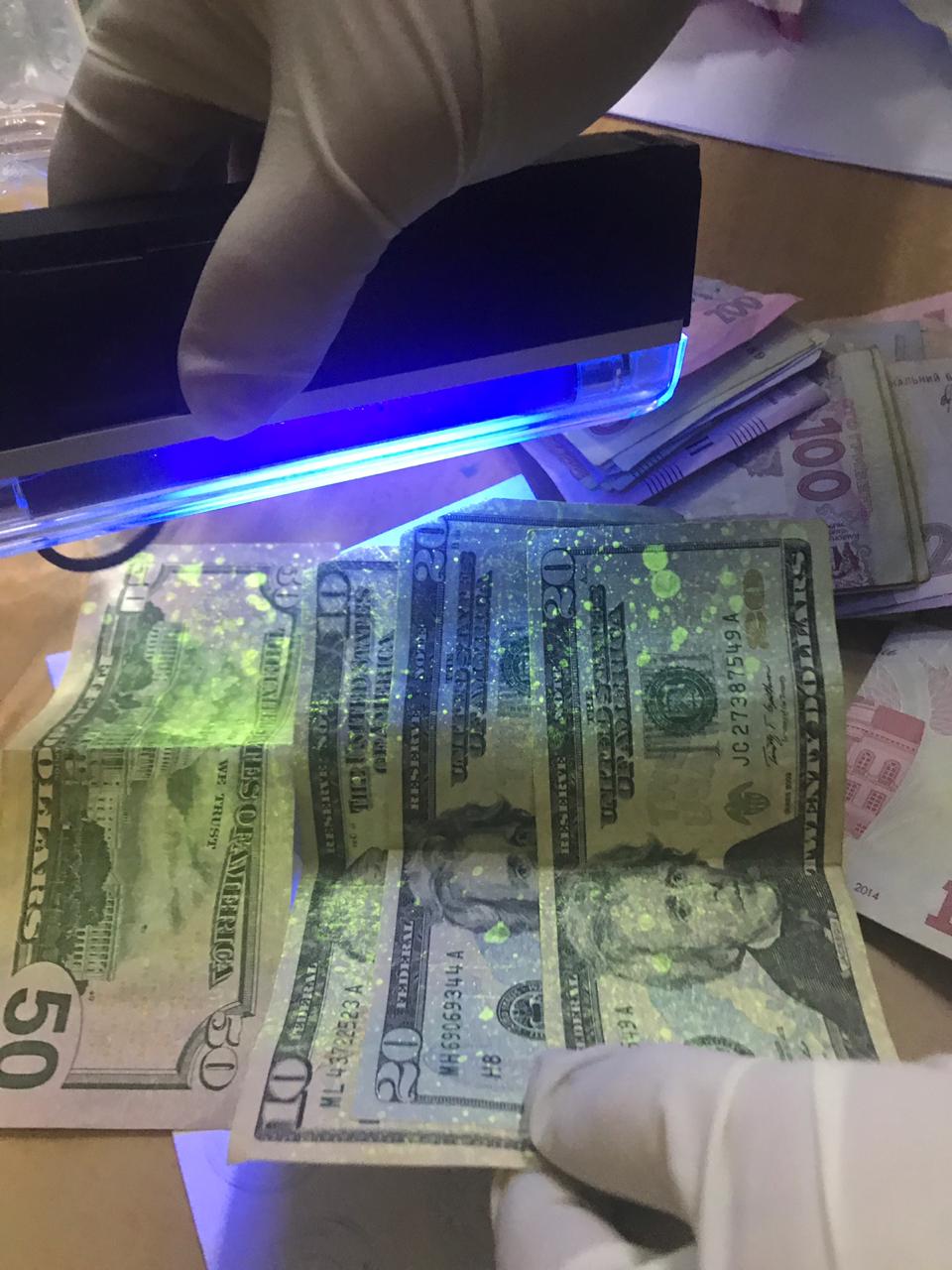 Правоохоронці затримали чоловіка в одному із районних центрів області під час отримання чергового хабаря у розмірі сто американських доларів від місцевого мешканця. Раніше оперативники спецслужби задокументували ще однин факт отримання зловмисником аналогічної суми неправомірної вигоди.