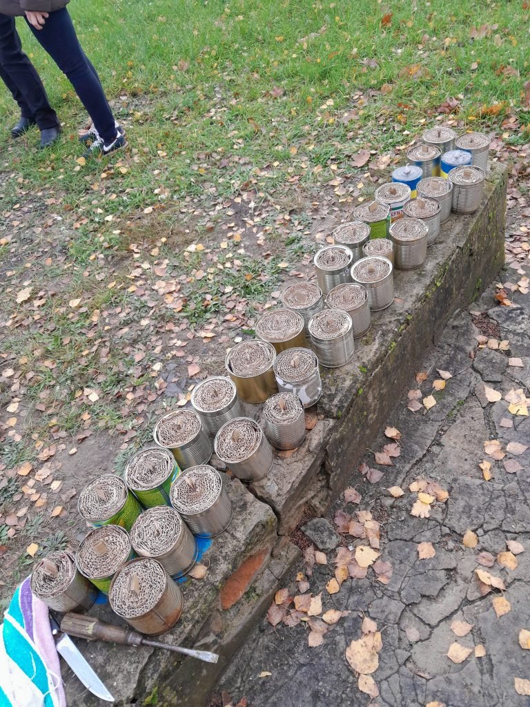Зібравши всі необхідні матеріали, приступили до роботи. Хтось обрізав бляшанки, хтось нарізав і скручував картон, інші топили віск тощо.