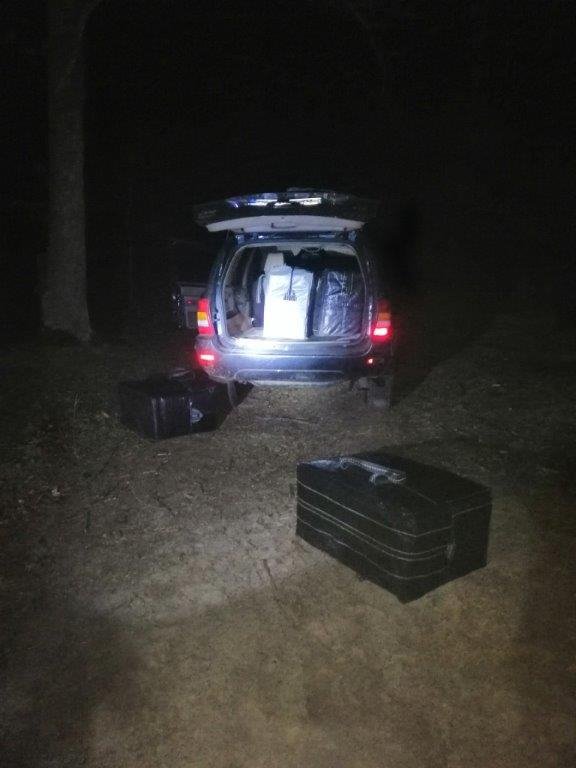 З метою затримання правопорушників правоохоронці здійснили два постріли з сигнального пістолета для освітлення місцевості, після чого невідомі втекли, залишивши авто та пакунки з куривом.
