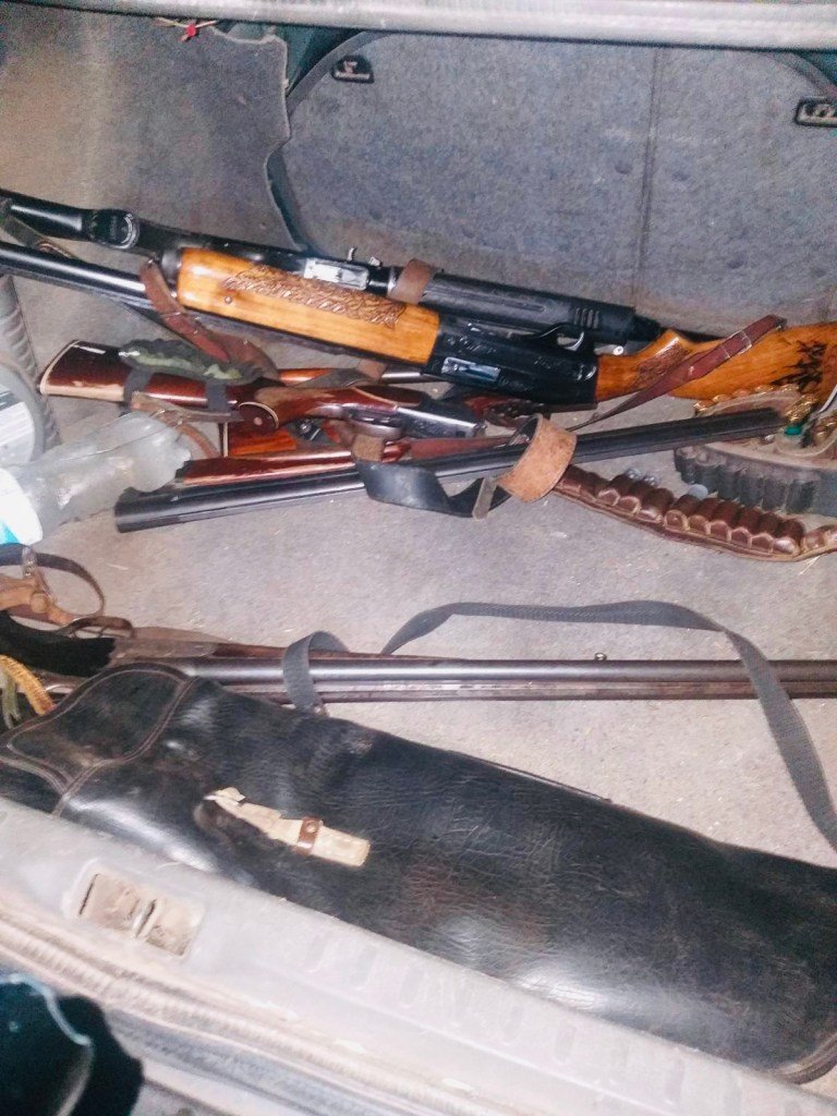 На місці затримали 4 чоловіків. Поруч в автівці виявили зброю – 5 одиниць, одна з яких – без належних документів.