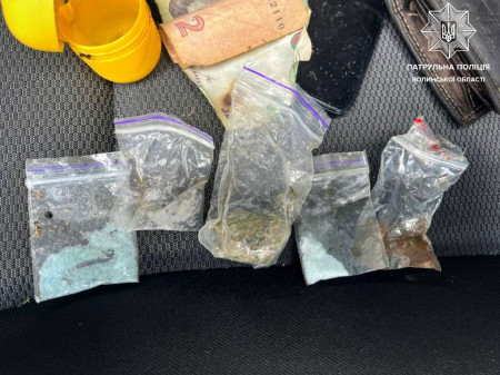 Патрульні зупинили чоловіка, ним виявився 28-річний місцевий житель, який раніше притягувався до відповідальності за наркозлочини. Інспектори прийняли рішення провести щодо громадянина поверхневу перевірку. Під час огляду у нього виявили п’ять зіп-пакетів з речовинами, що за зовнішніми ознаками були схожі на наркотичні. У двох пакетиках містилася речовина зеленого кольору рослинного походження, ще у трьох – кристалізована речовина білого та синього забарвлення.