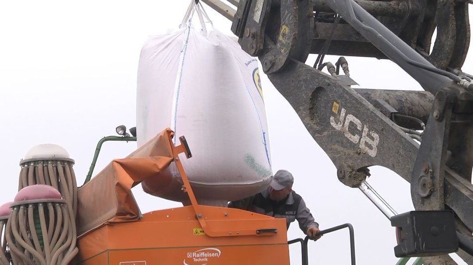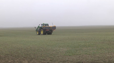 На іншому шматі поля площею 950 гектарів підживлюють мінеральними добривами озиму пшеницю. Тракторист Богдан Жакун каже: у лійку вміщається три тонни міндобрива: «Лійка вносить міндобриво на 36 метрів: 18 метрів в одну сторону і в іншу».Посівна цього року – пізня через погоду, каже фермер Павло Давидюк. Орендує 2 900 гектарів землі. Зі слів волинянина, у 2020 році 9 березня фермери вже сіяли горох.