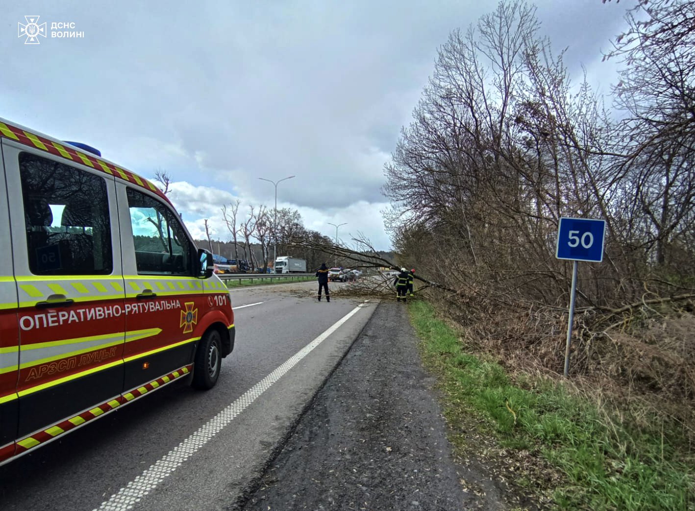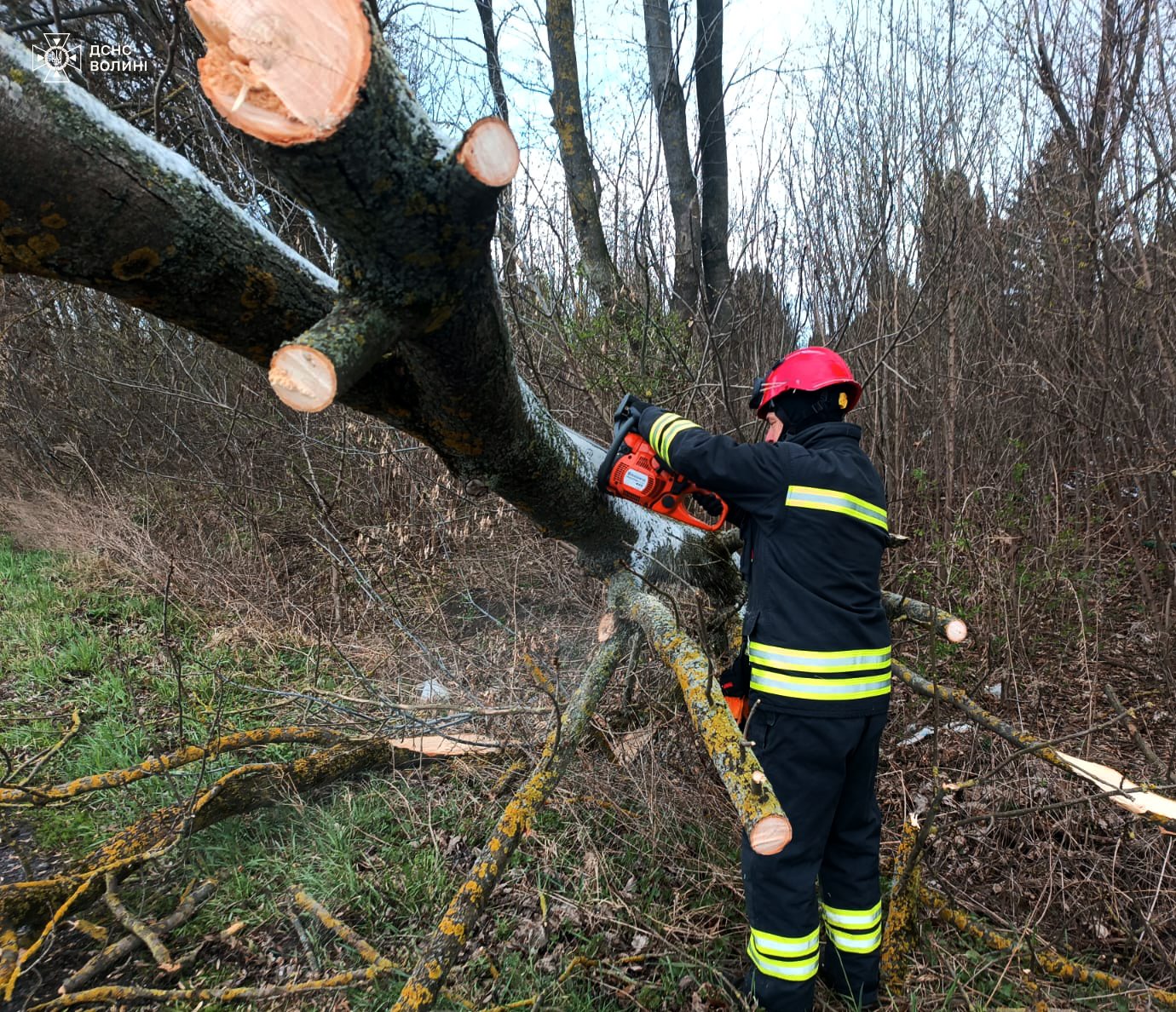 10 квітня обідньої пори працівники чергової варти за допомогою бензопили розрізали повалене дерево, що впало на автодорогу у с. Гаразджа Луцького району. Рятувальники відтягнули дерево на узбіччя й звільнили проїжджу частину для руху транспорту.