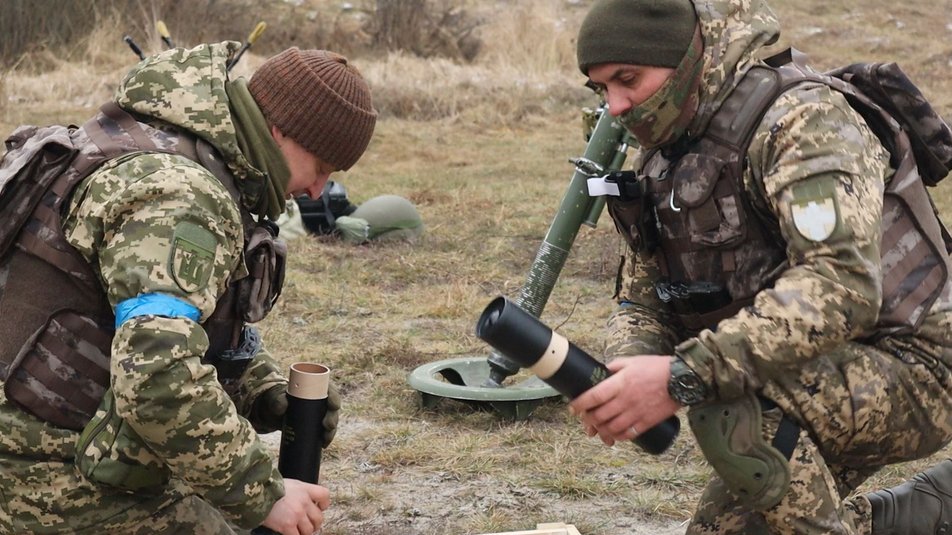 «Зброя (міномет, – ред.) стріляє навісним снарядом, і можна стріляти з укриттів, аби противник тебе не бачив, тобто не прямою наводкою, а з-за горбка чи з окопу. Б’ють мітко наші мінометники», – каже командир міномета Олег на позивний Волина.Головний сержант мінометної батареї Іван з позивним Старк пішов на службу добровольцем наступного дня після повномасштабного вторгнення росіян.Читати ще: Як на Волині готують добровольців до наступу з Білорусі