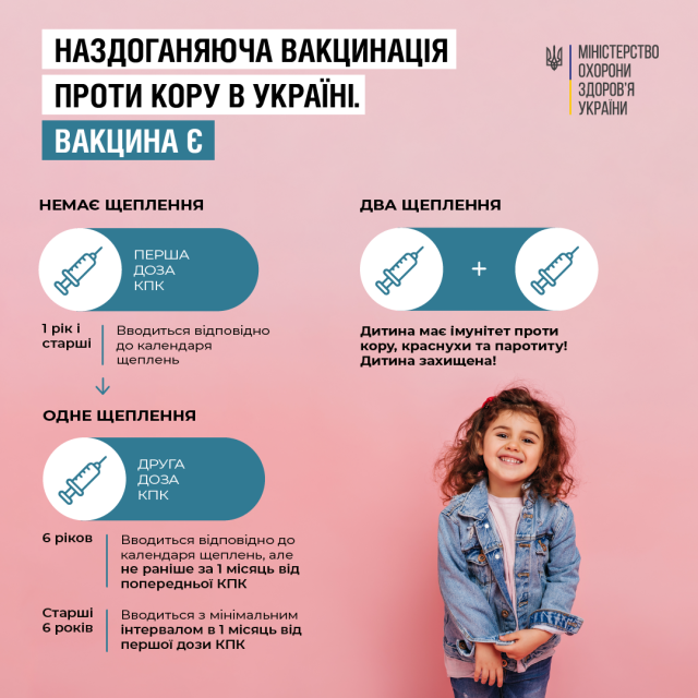 Напередодні навчального року стартувала національна кампанія щеплення від кору діток, які через війну або інші обставини пропустили вакцинацію.
