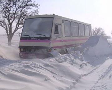 На Волині у снігових заметах застрягли автобус, грейдер і «швидка»
