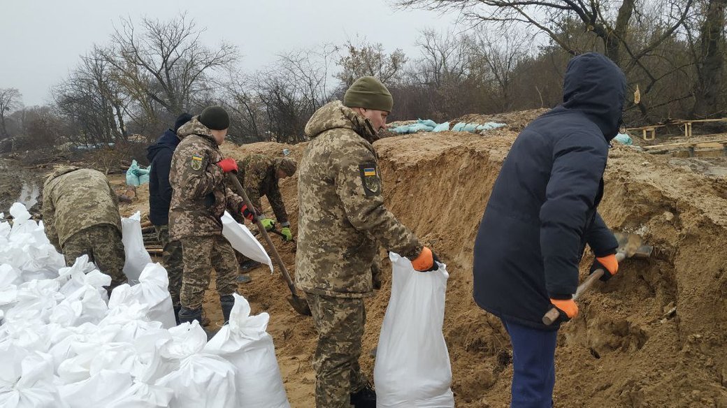 «Зараз ще укріплюємо бійниці. Набираємо ґрунт, пісок. Будуть морози і ми маємо усе це підготувати, аби позиції і бійниці були добре укріплені у разі, якщо будуть обстріли з важкої артилерії», – каже доброволець Олександр Рижко.За словами учасника добровольчого формування Миколи Баглика, рити окопи – складно, тому залучали спецтехніку. «Якщо буде наступати ворог, то він, по-перше, тут не пройде. Укріплюємось добре, робимо все, як для себе. Це наша земля. Нам немає куди йти», – додає чоловік.