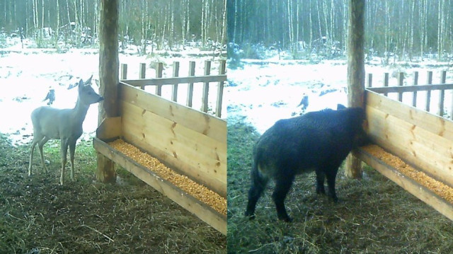 Наповненість годівниць і майданчиків кормами та харчами перевіряють єгері, котрі за потреби ці запаси поповнюють.