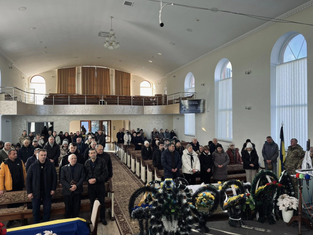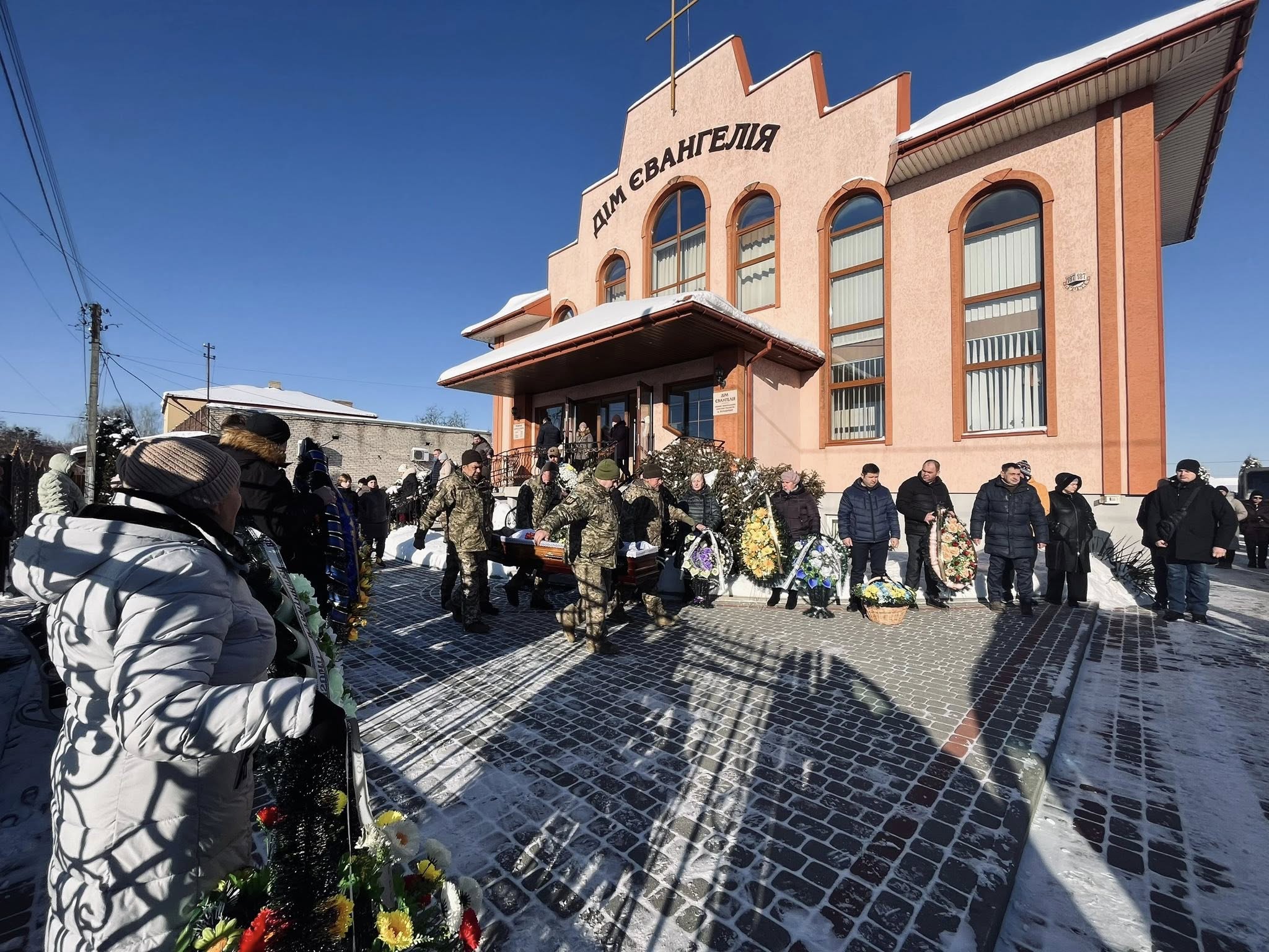 Скорботний кортеж із тілом військовослужбовця, який прибув до Дому Євангелія, зустріли з почестями усі, хто прийшов віддати останню шану воїну – його рідні, віруючі браття і сестри, друзі, побратими, міський голова Ігор Пальонка, небайдужі містяни.
