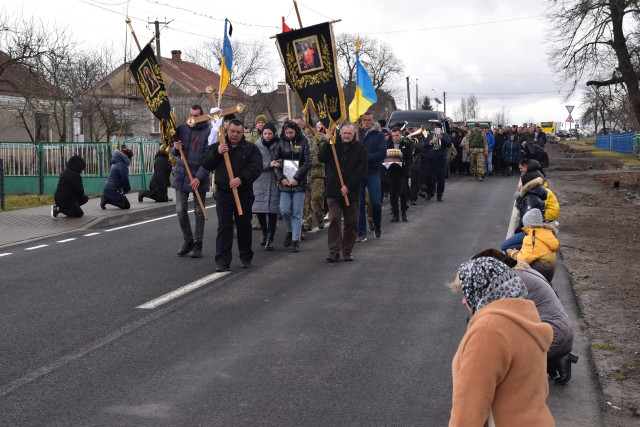 Церемонію прощання священнослужителі здійснили на подвір’ї батьківської хати Героя у селі Шклинь Другий. Велелюдним коридором з прапорами та квітами у руках й під звуки духового оркестру проводжали Захисника від батьківської домівки.