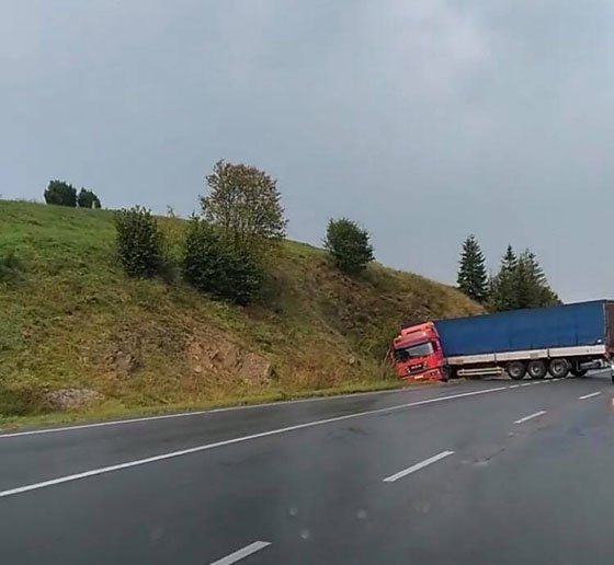 На Волині вантажівка «Scania» злетіла у кювет, водій – у лікарні
