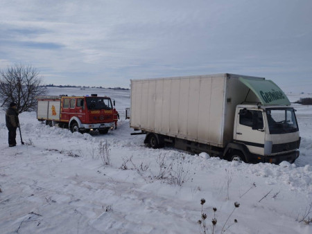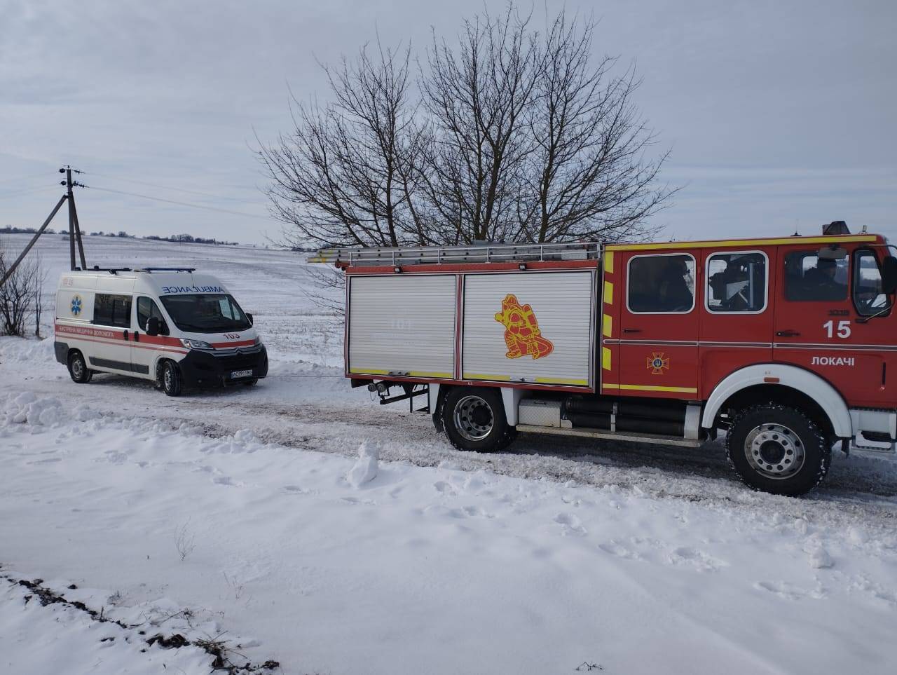 Сьогодні об 11:27 на лінію 101 надійшло повідомлення про те, що між селами Замличі і Бермешів Локачинської громади вантажівка застрягла в обледенілому заметі й заблокувала шлях кареті швидкої.