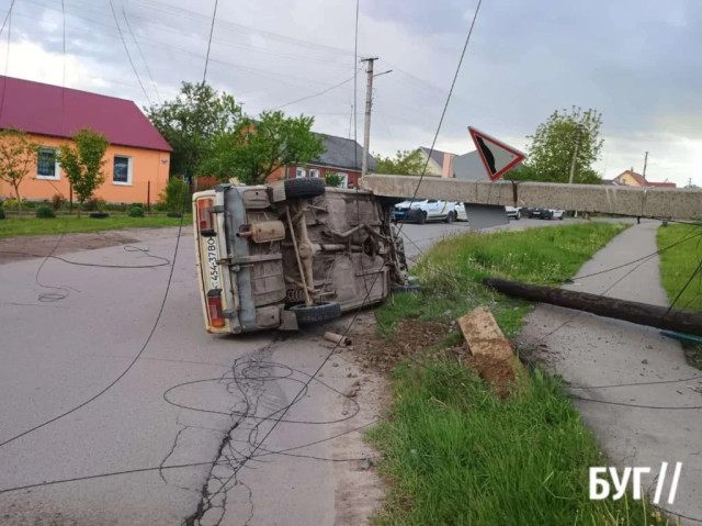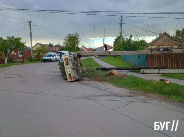 На Волині ВАЗ врізався в електроопору і перекинувся