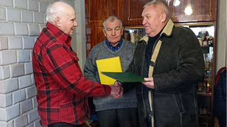 Привітали довгожителя зі святом Маневицький селищний голова Олександр Гаврилюк разом із заступником голови селищної організації ветеранів війни і праці Дмитром Фальковським.
