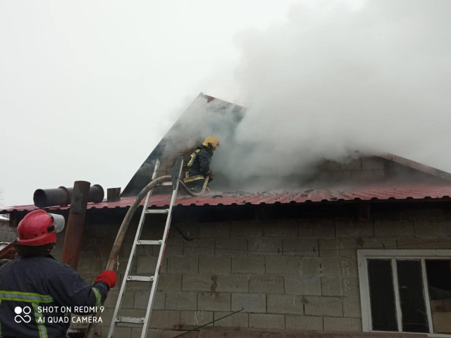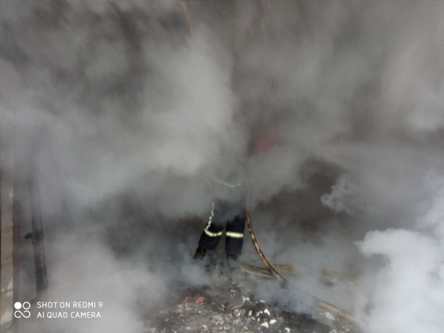 О 14:07 пожежу вдалось ліквідувати, вогнем знищена значна частина покрівлі та перекриття. Ймовірна причина пожежі - коротке замикання електромережі.