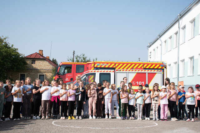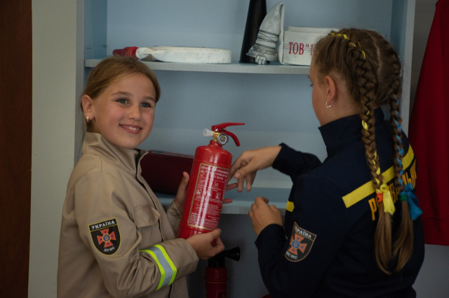 Після урочистого відкриття класу безпеки рятувальники та поліцейські провели для дітей інтерактивне заняття, що перемістилося зі стін закладу на шкільне подвір’я, де кожен охочий міг довідатися більше про професію рятувальника й поліцейського та побачити у дії їхню техніку й обладнання.