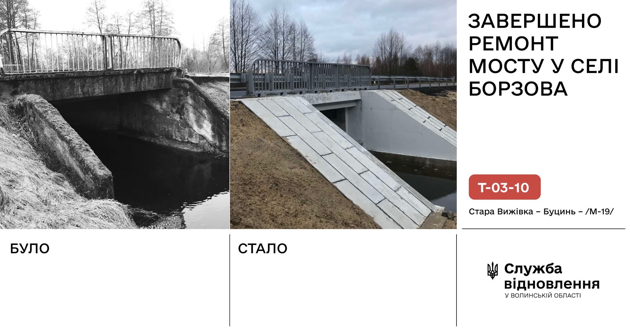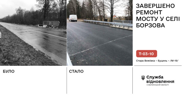 У селі Борзова Старовижівської територіальної громади завершили ремонт мосту, що розташований на автомобільній дорозі Т-03-10 Стара Вижівка – Буцинь – /М-19/.