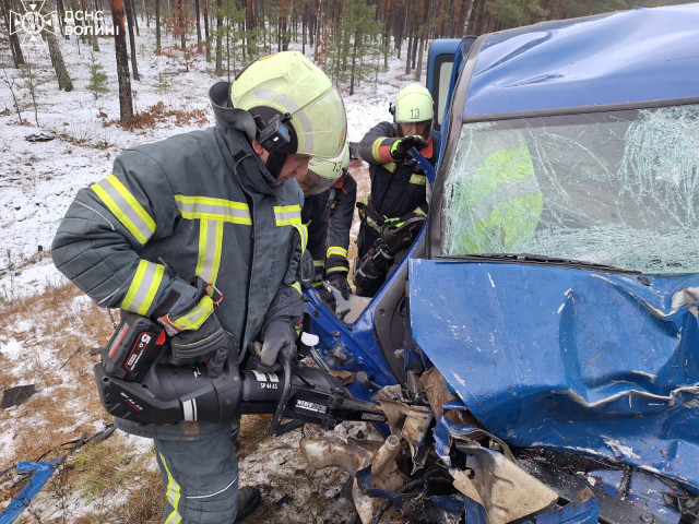 Працівники служби порятунку за допомогою спеціального гідравлічного інструменту деблокували потерпілих та передали їх до карети швидкої допомоги.