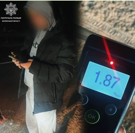 Чоловік погодився пройти огляд на місці за допомогою приладу Драгер. Результат – 1,87 проміле.